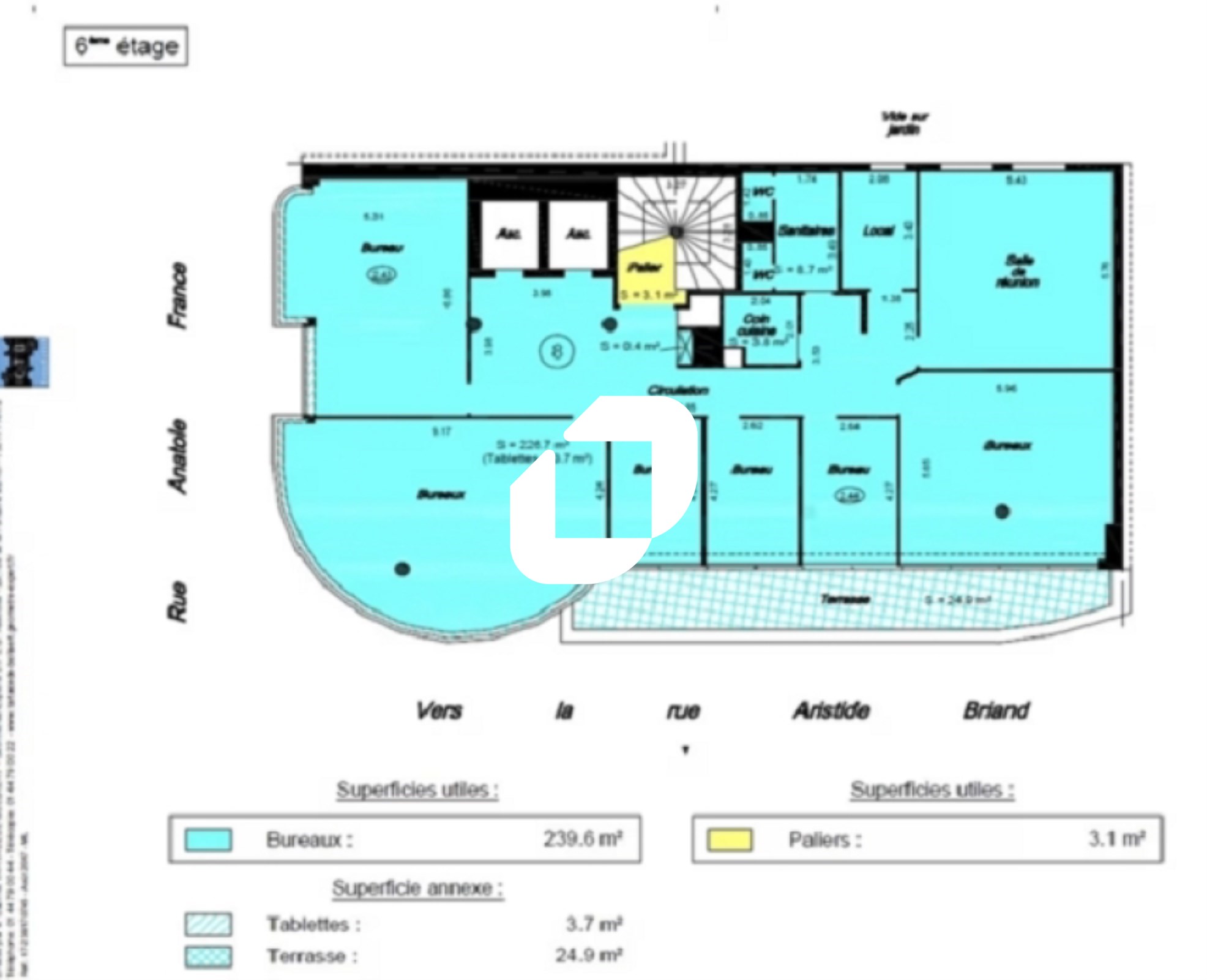 | Bureaux | 6ème étage | 260 m² | 390.00 | 72.00 |