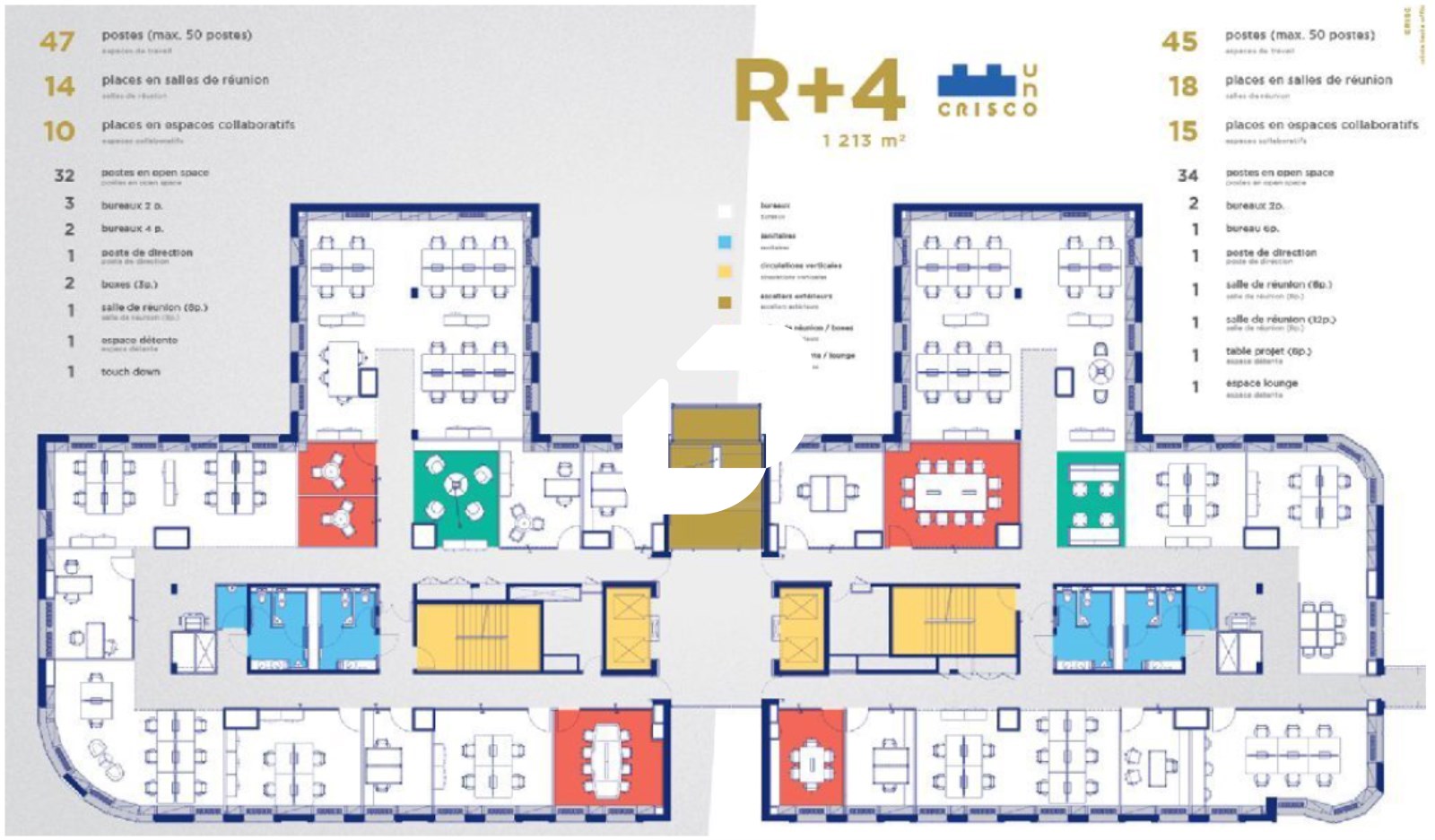 | Bureaux | 3ème étage | 472 m² | 250.00 | 94.14 |