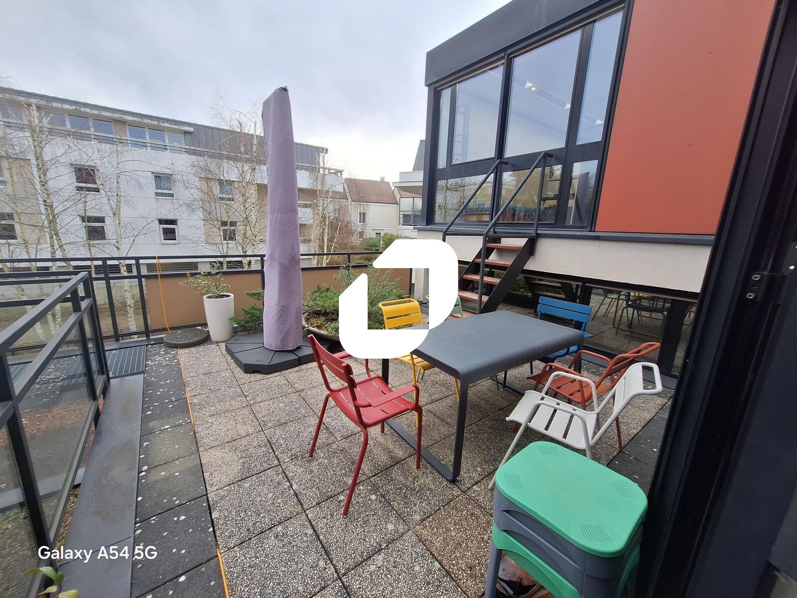 . Bureaux composés d'espaces ouverts et de bureaux, un coin cuisine, une terrasse en partage