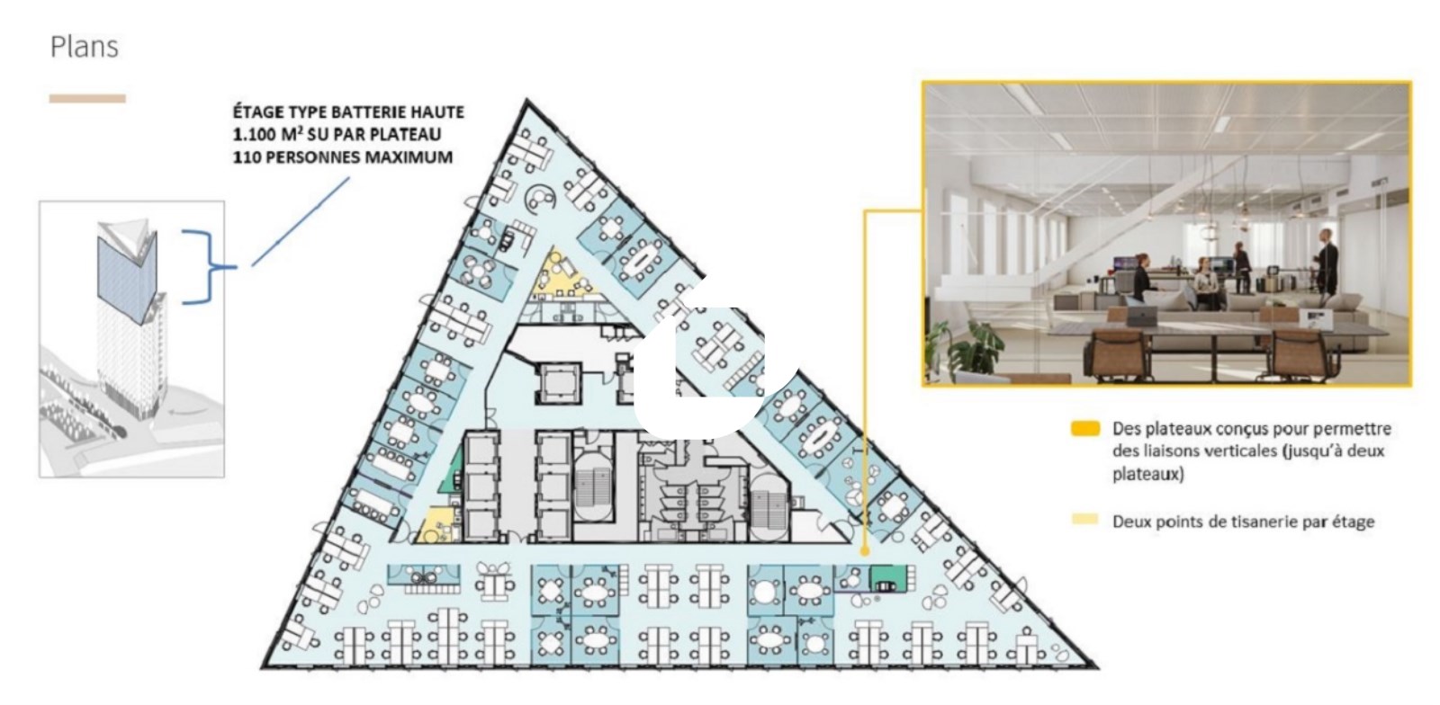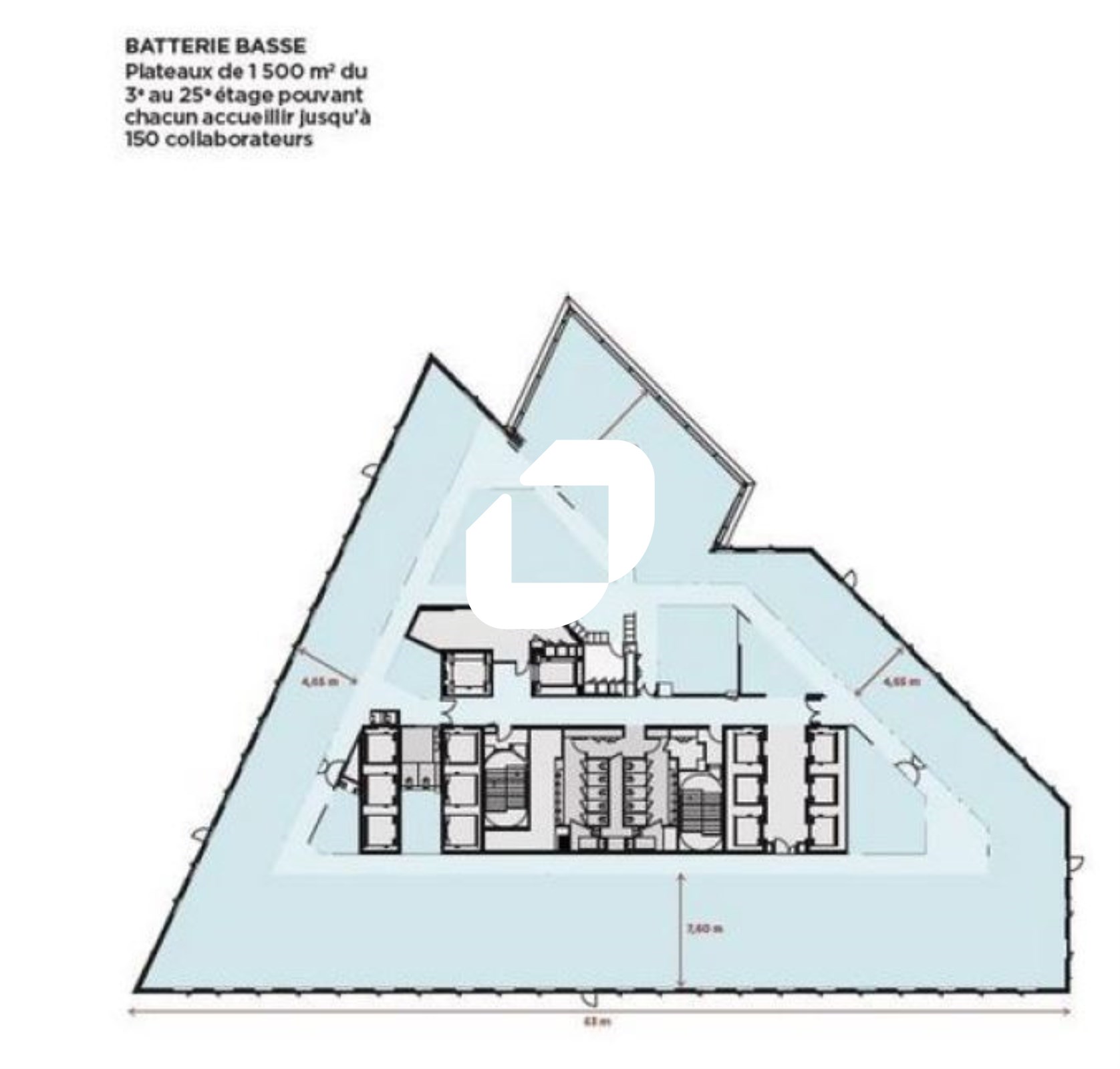 | Bureaux | 25ème étage | 1 614 m² | 510.00 | 62.00 |