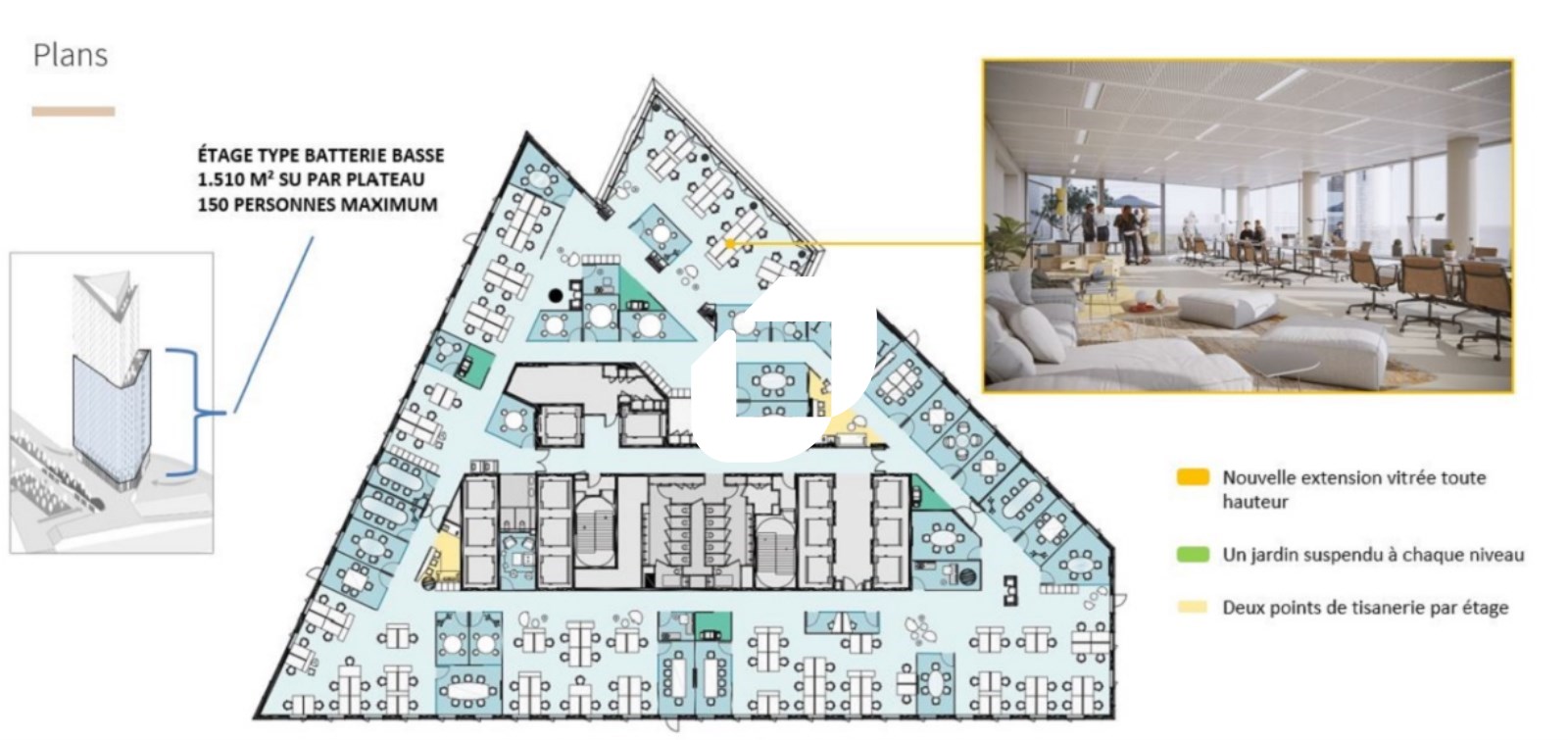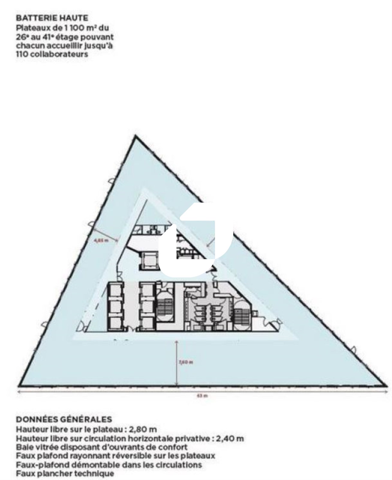 | Bureaux | 20ème étage | 1 638 m² | 510.00 | 62.00 |