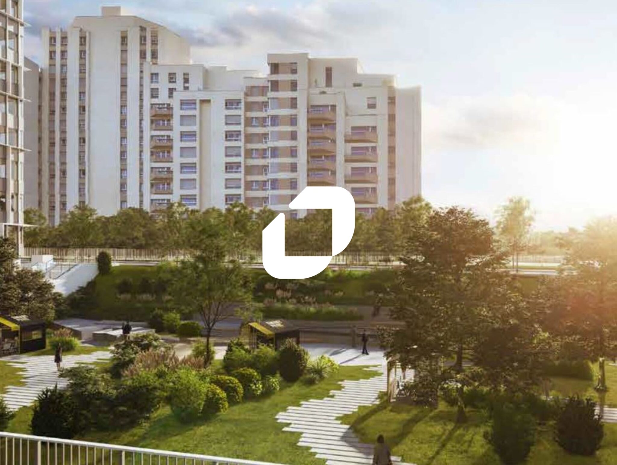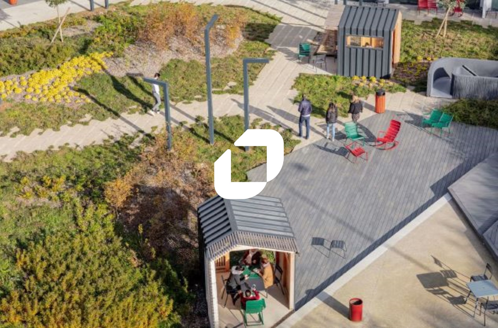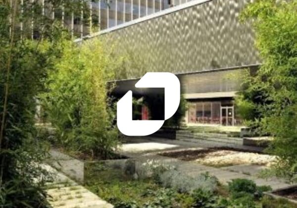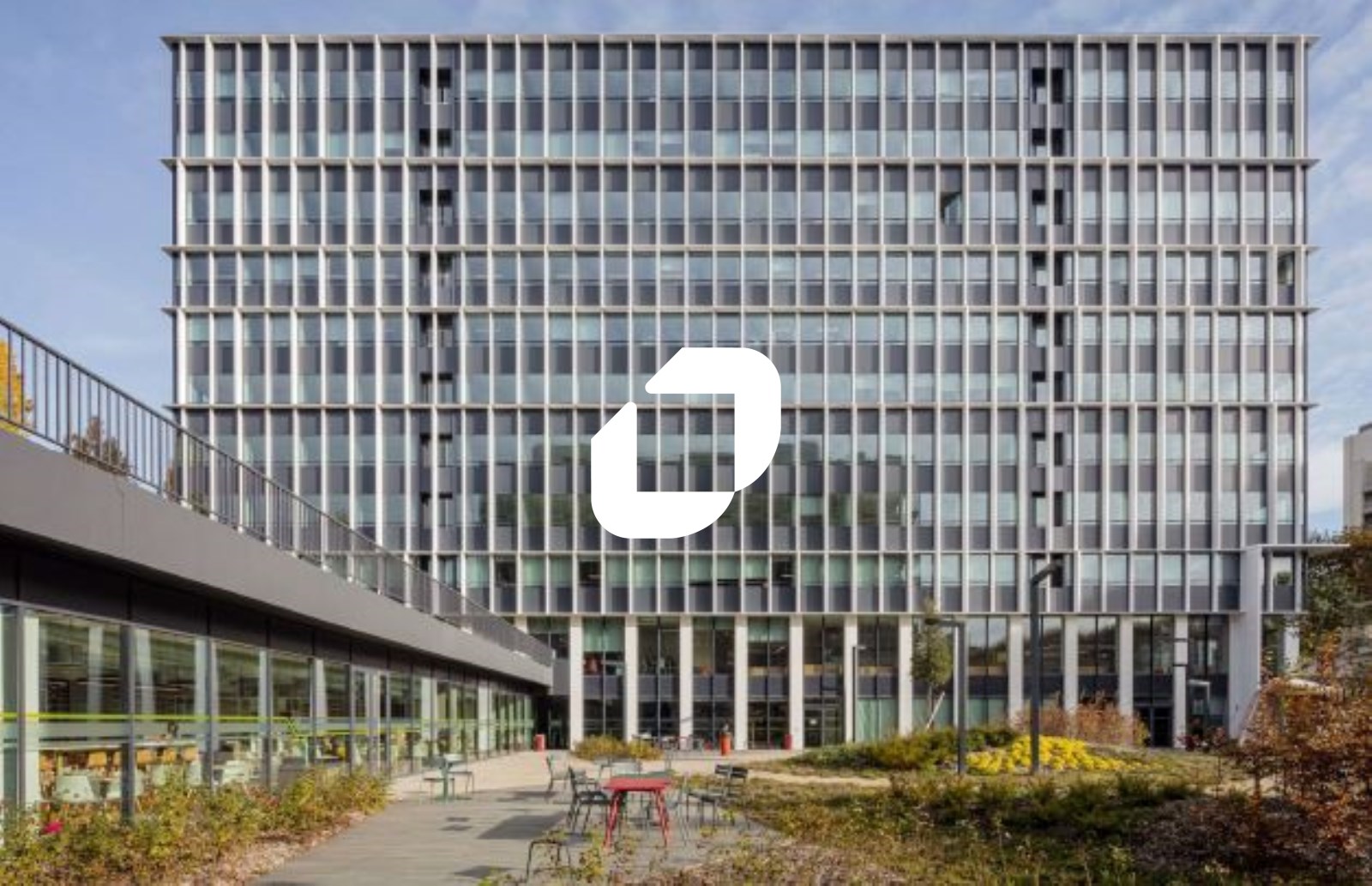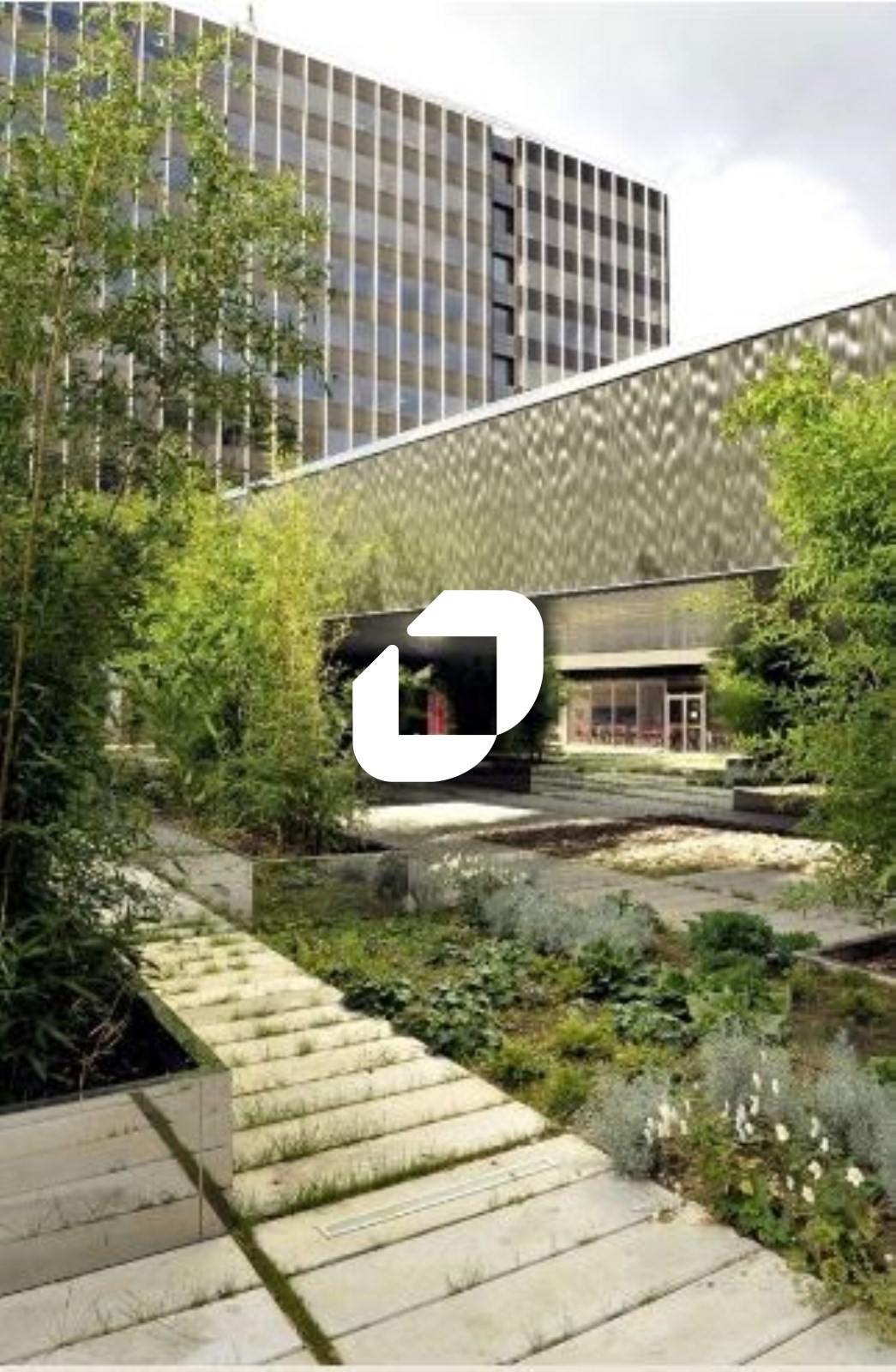 . 2 bâtiments reliés par un jardin. Contrôle d'accès