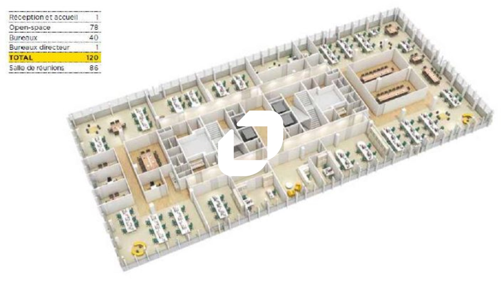 | Bureaux | 3ème étage | 1 434 m² | 210.00 | 60.80 |