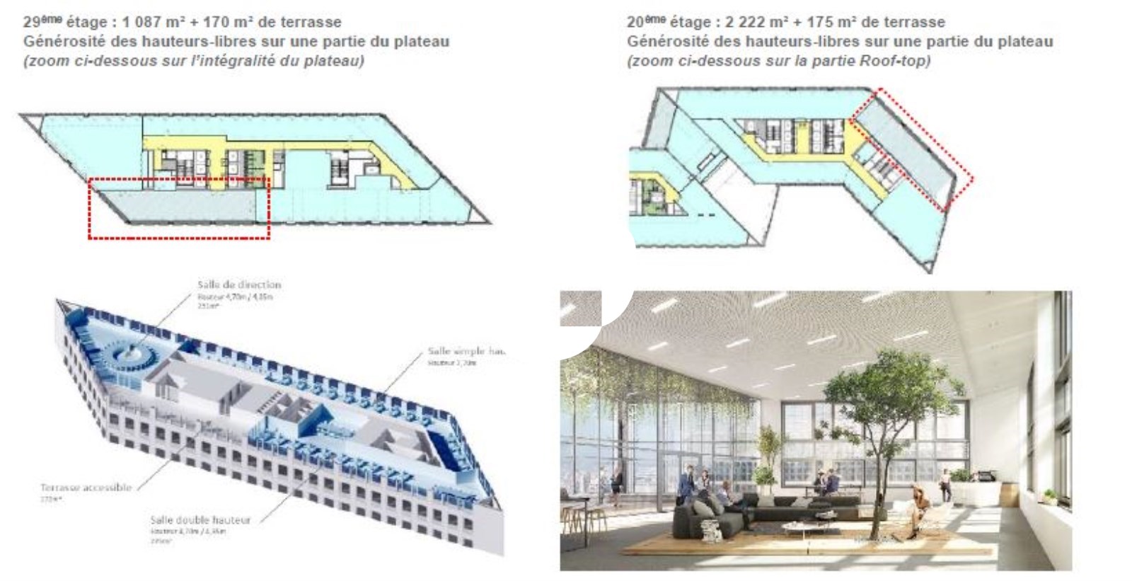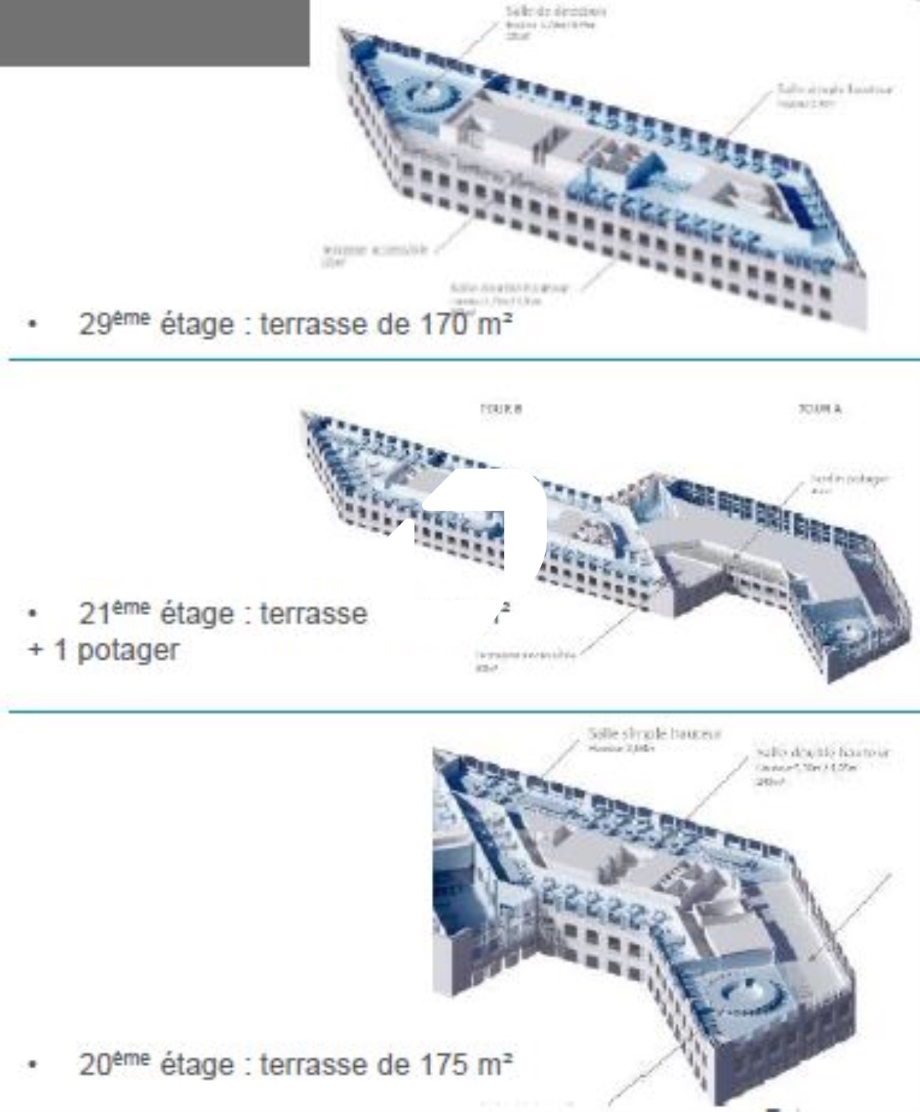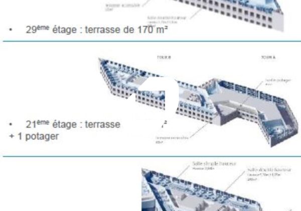 . Terrasses accessibles au 20ème, 21ème et 29ème : 555 m²