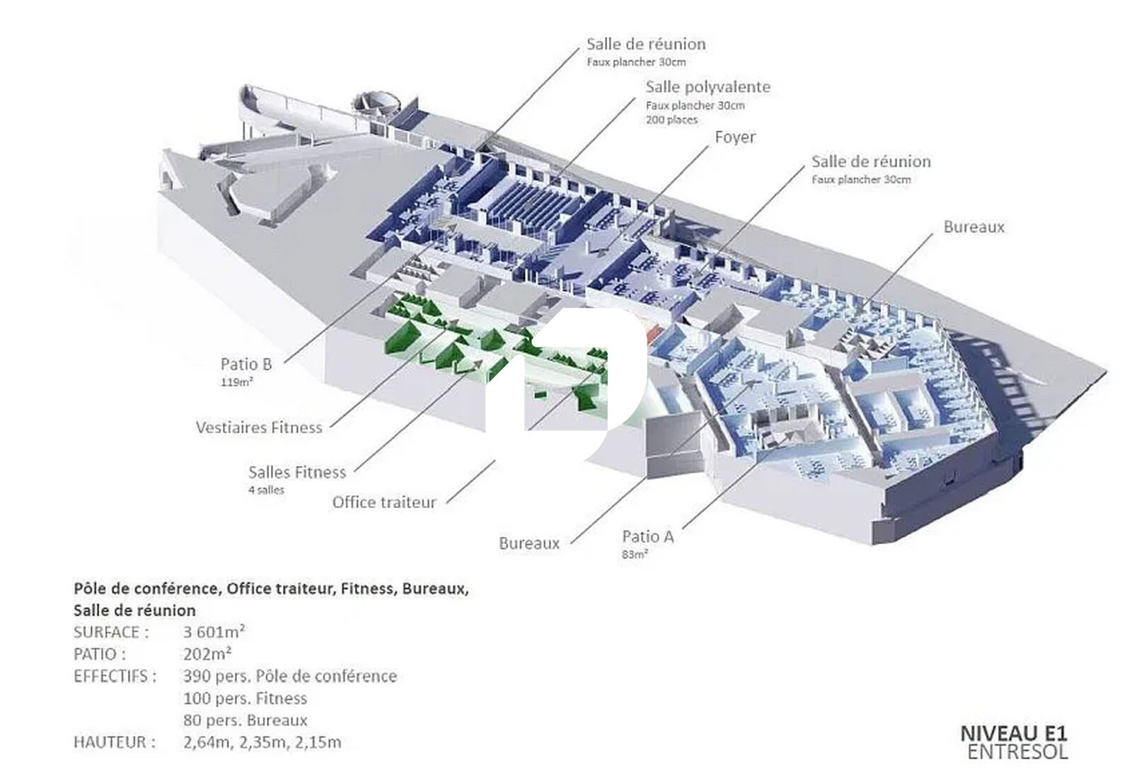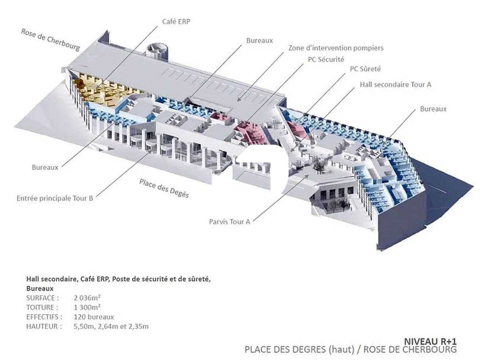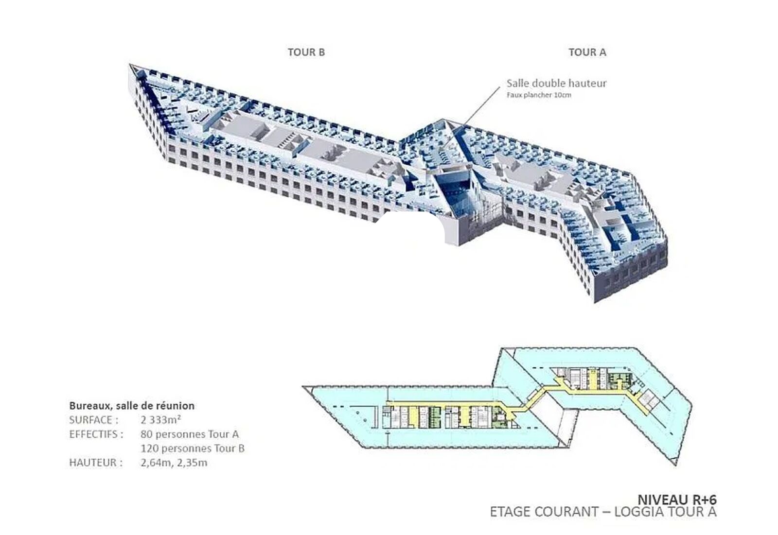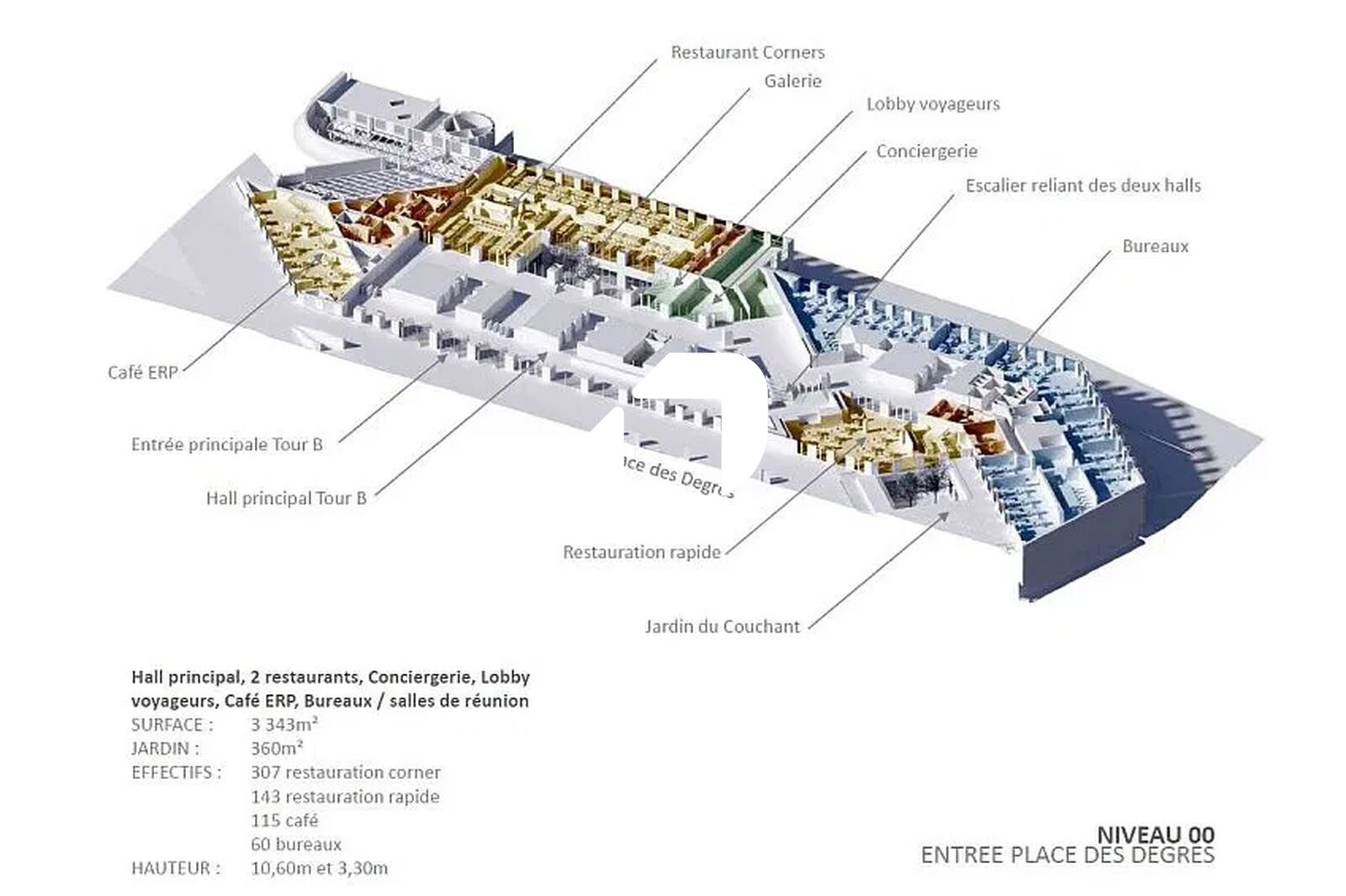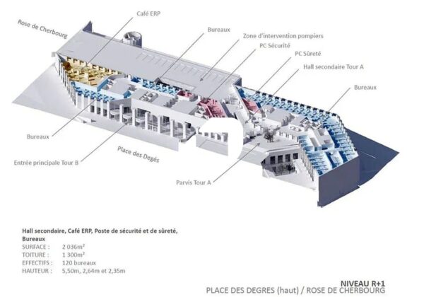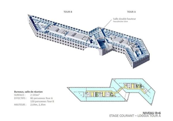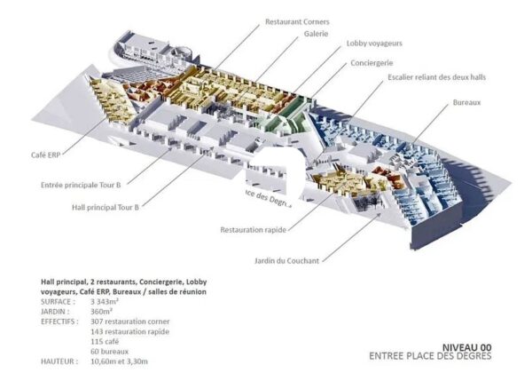 . 6.850 m² dédiés aux services (restauration,fitness, business center, conciergerie..)
