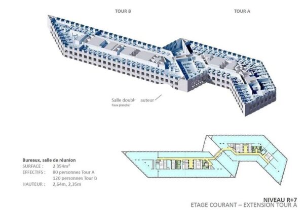 . Projet de restructuration lourde réunissant deux bâtiments IGH existants (Tour Pascal A&B). Capacité totale de 5.000 personnes
