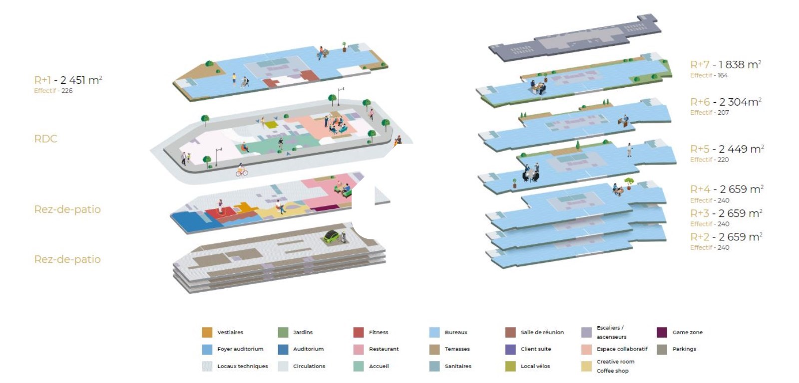 . 1 local vélos au RDC et 185 places complémentaires dans les niveaux de parkings