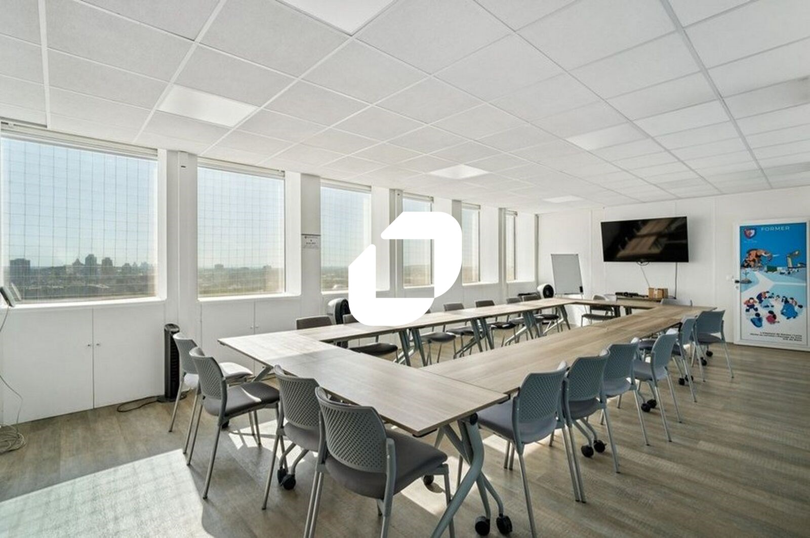Plateaux en étage livrés aménagés, climatisés et libre de cloisonnement.