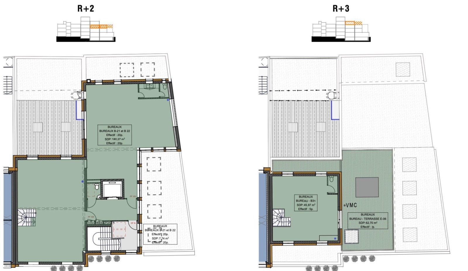 Bureaux | 2ème étage | 101 m² | 164.00 | 40.00 |