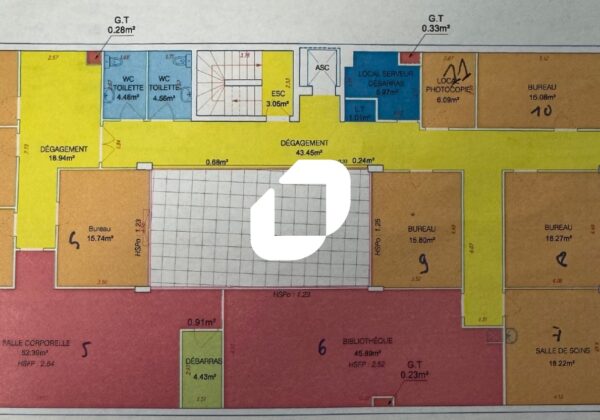 | Bureaux | 1er étage | 363 m² | 223.00 | 45.00 |