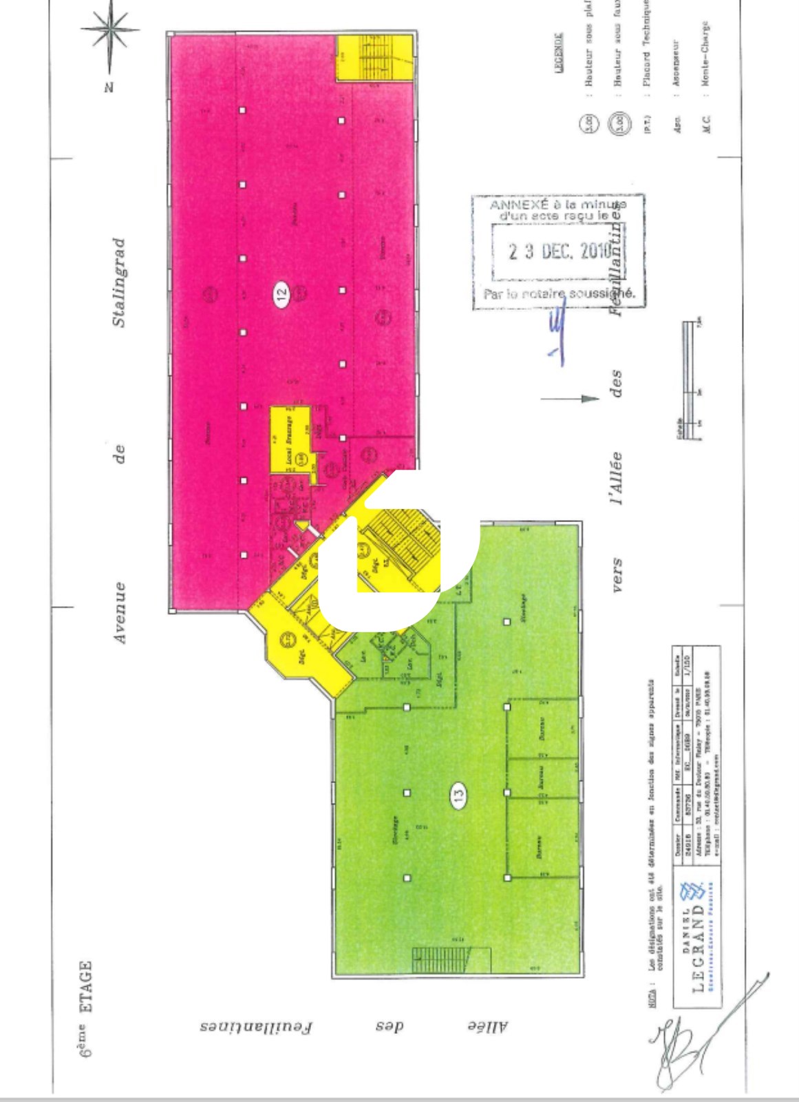 | Bureaux | 5ème étage | 489 m² | 180.00 | 50.03 |