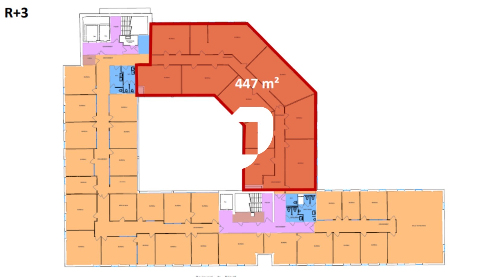 | Bureaux | 3ème étage | 447 m² | 145.00 | 65.00 |