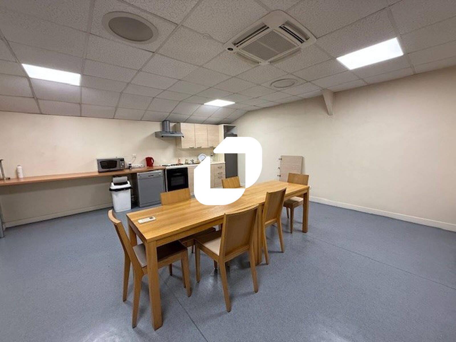 Salle de réunion et cuisine commune .