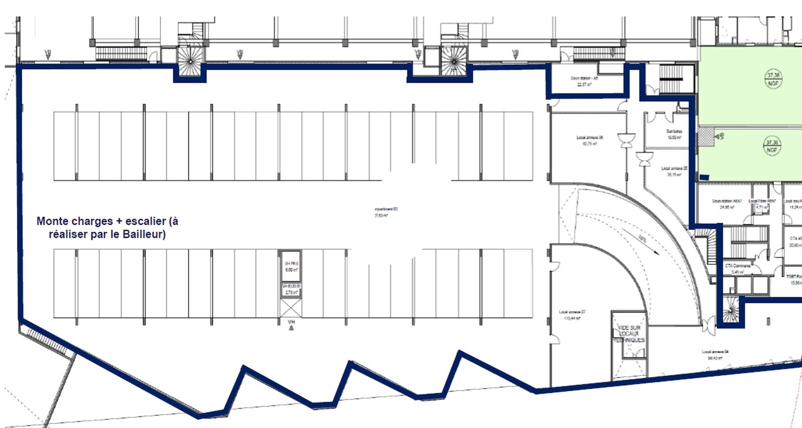 La Zone logistique sera livrée en coque brute Finitions Plancher/mur/plafond brut de béton