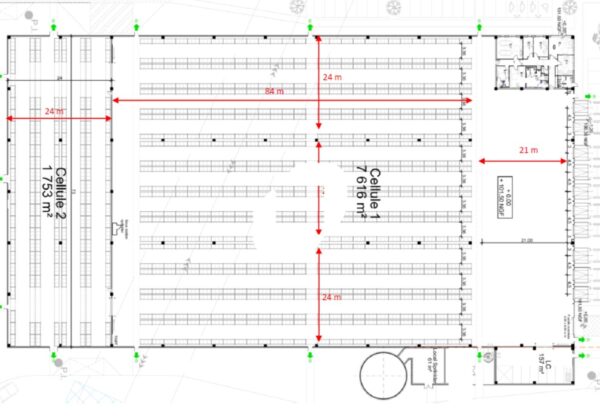 . Hauteur sous poutre : 9.8 mètres
