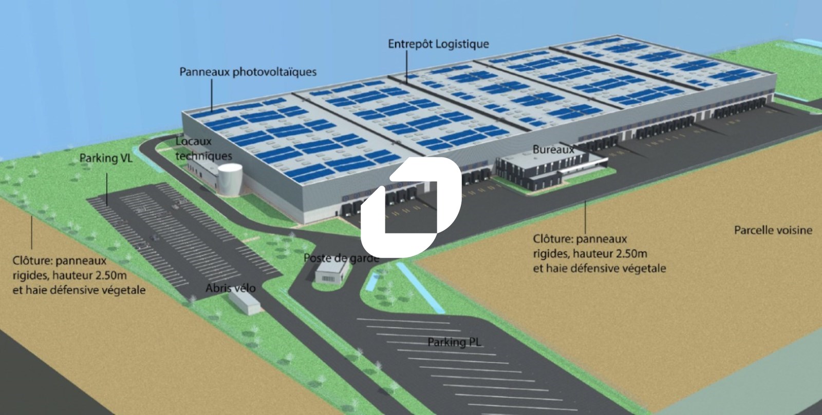 Le site comprendra 5 cellules, 1 200 m² de bureaux, 33 quais, 7 accès plain-pied, une hauteur sous poutre de 12 m, ainsi que 152 parkings VL et 12 parkings PL.