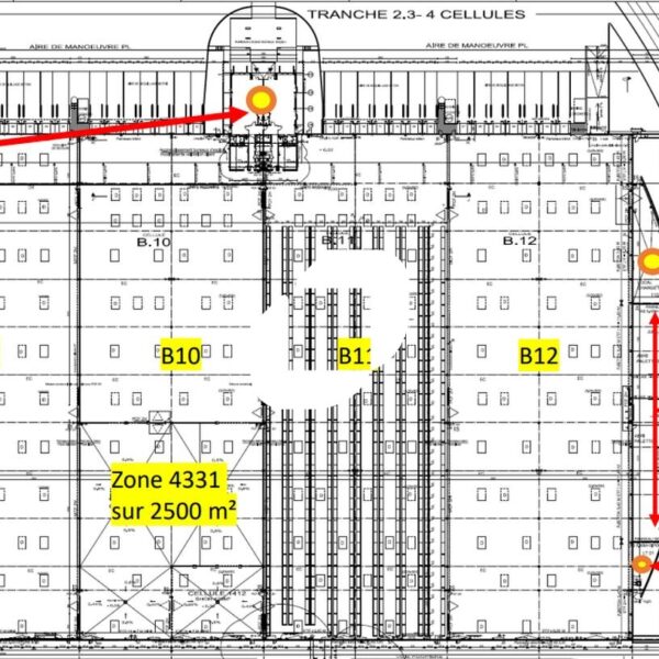 Cellules logistiques autorisées en ICPE, avec une belle hauteur libre de 10 mètres, de 28 quais niveleurs. Bureaux administratifs et locaux sociaux.