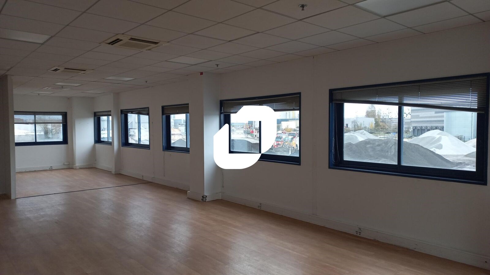 . Bureaux cloisonnés et espace ouverts. Locaux sociaux avec vestiaires