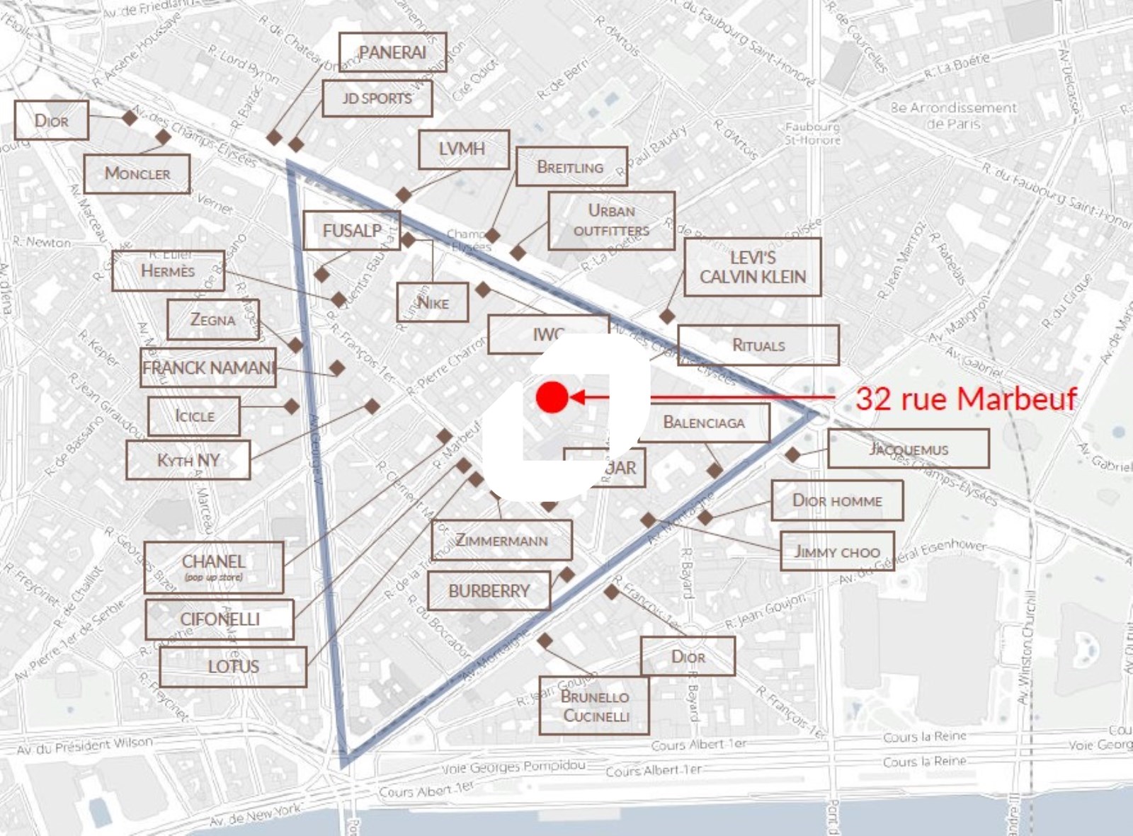 Nous vous proposons dans le Triangle d'Or de Paris, au cœur de l'industrie du luxe à la française, un local commercial de 681m² dans le 8ème arrondissement de PARIS (75008) . Immeuble entièrement restructuré par l’architecte Philippe Chiambaretta.