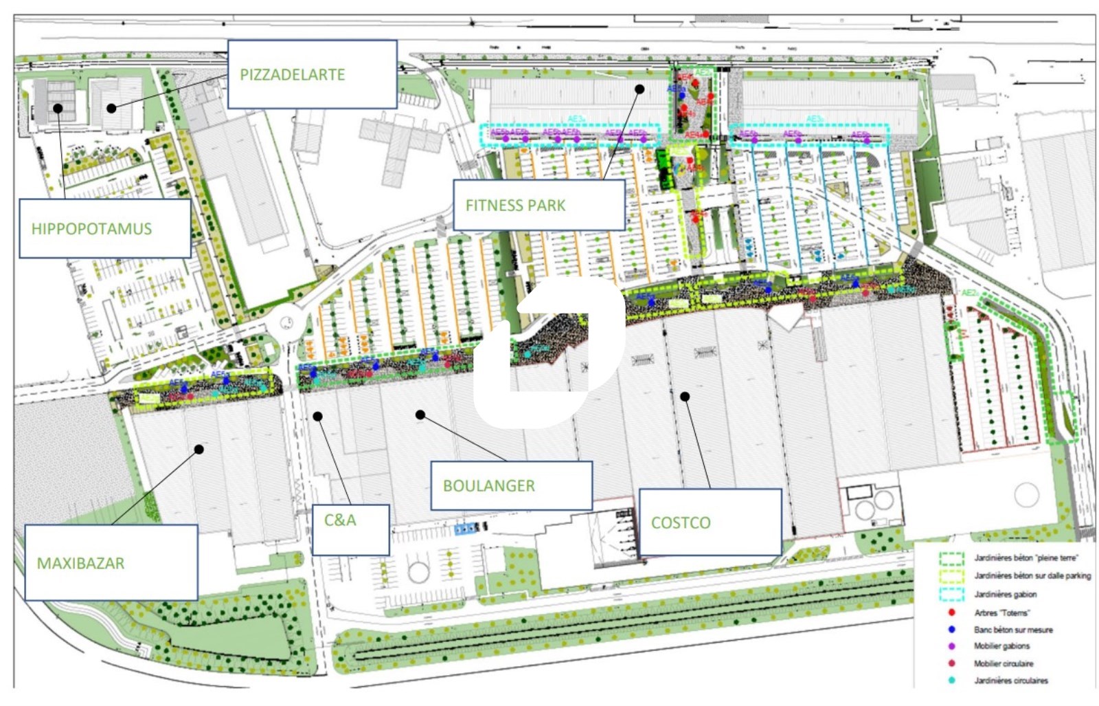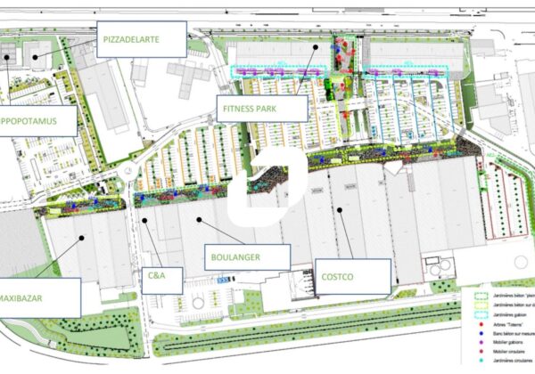 Centre commercial attractif avec des enseignes nationales (Costco, Boulanger, C&A, Fitness Park, …).