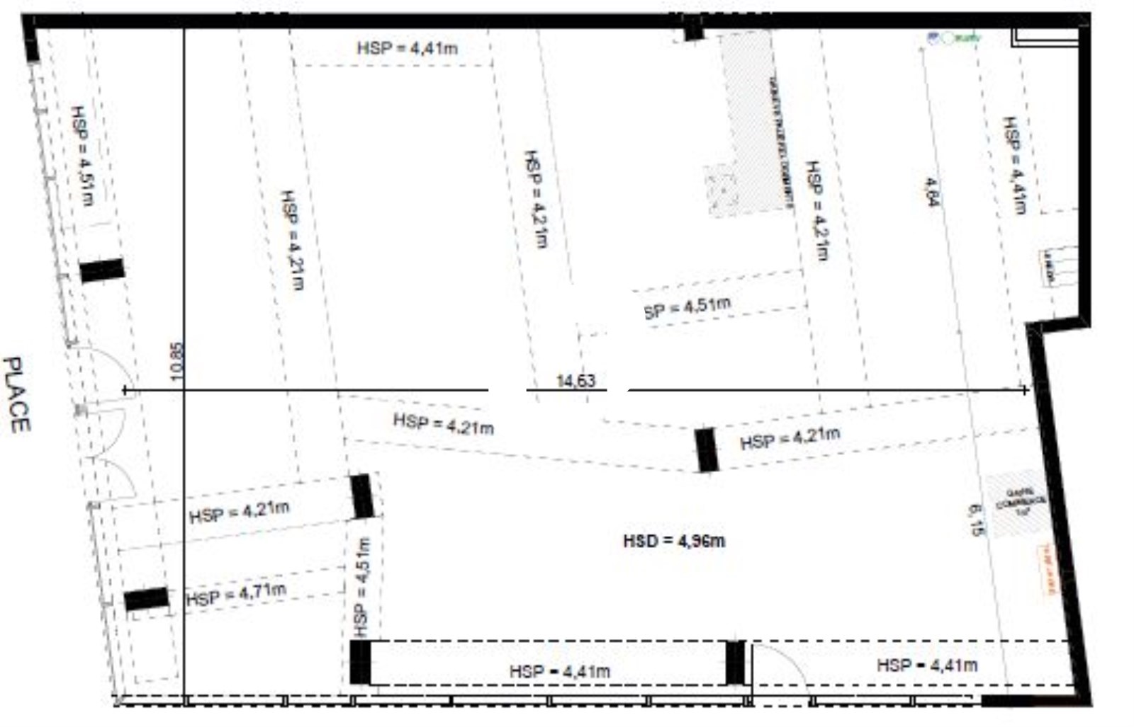 . Quartier commerçant . Hauteur sous plafond : 4.50m