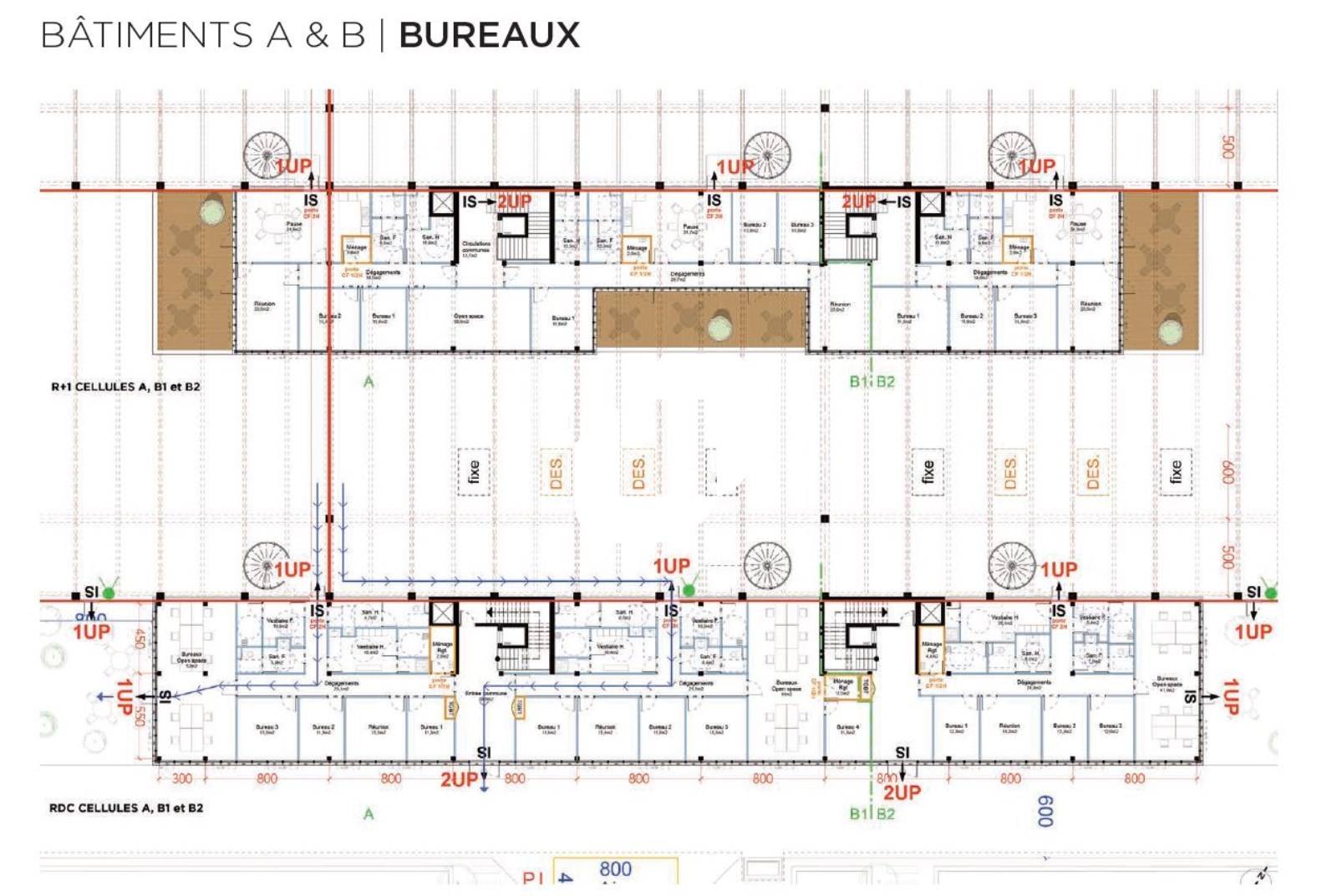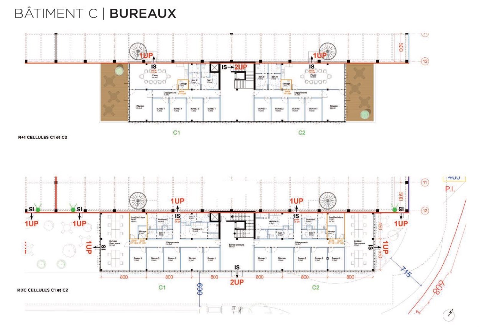 toiture végétalisée (entre cellules) et soit de
