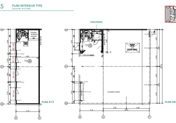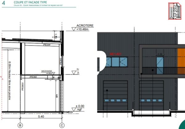 . Plancher : 500kg/m2 au RDC et 350kg/m2 au R+1