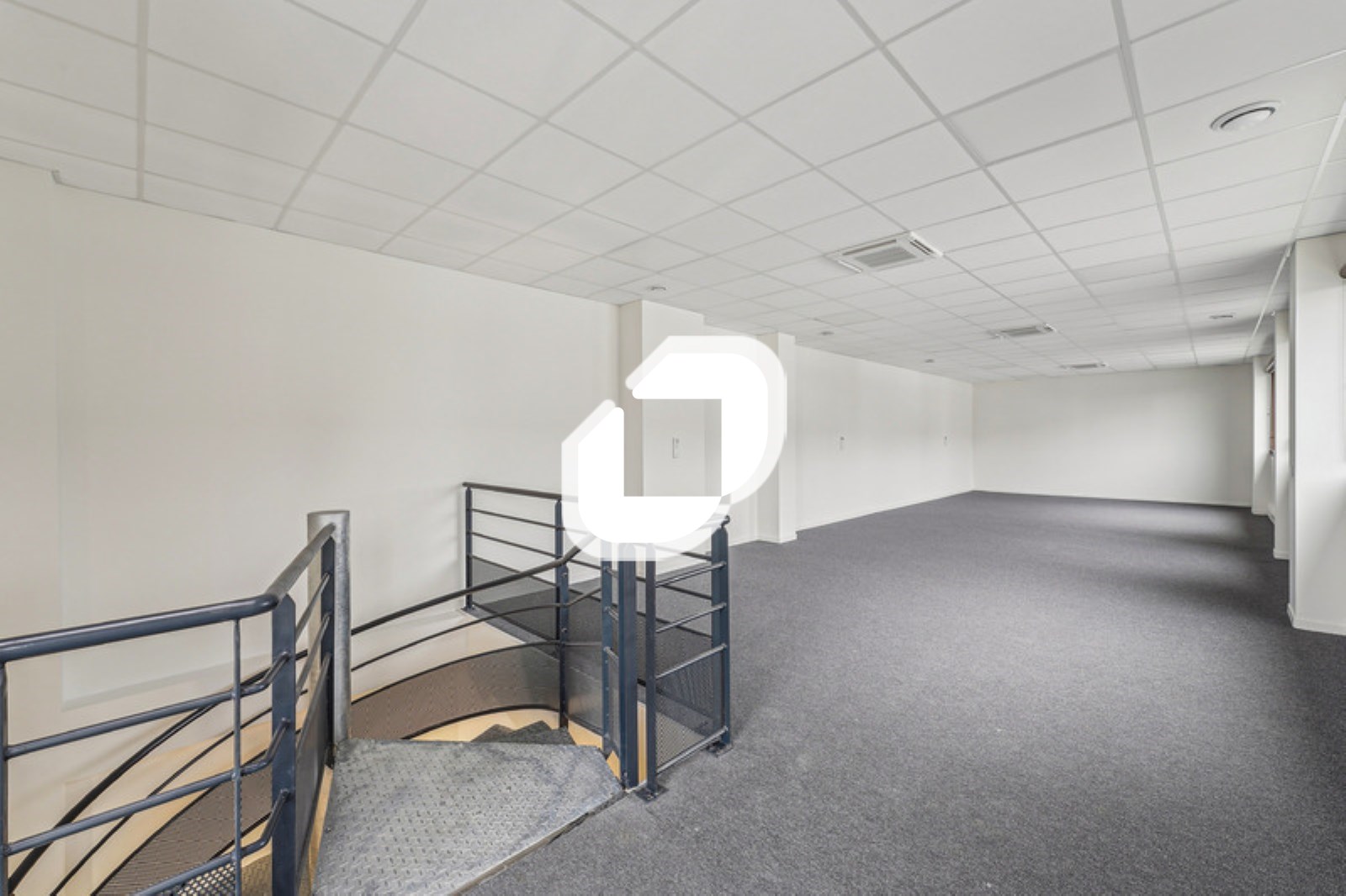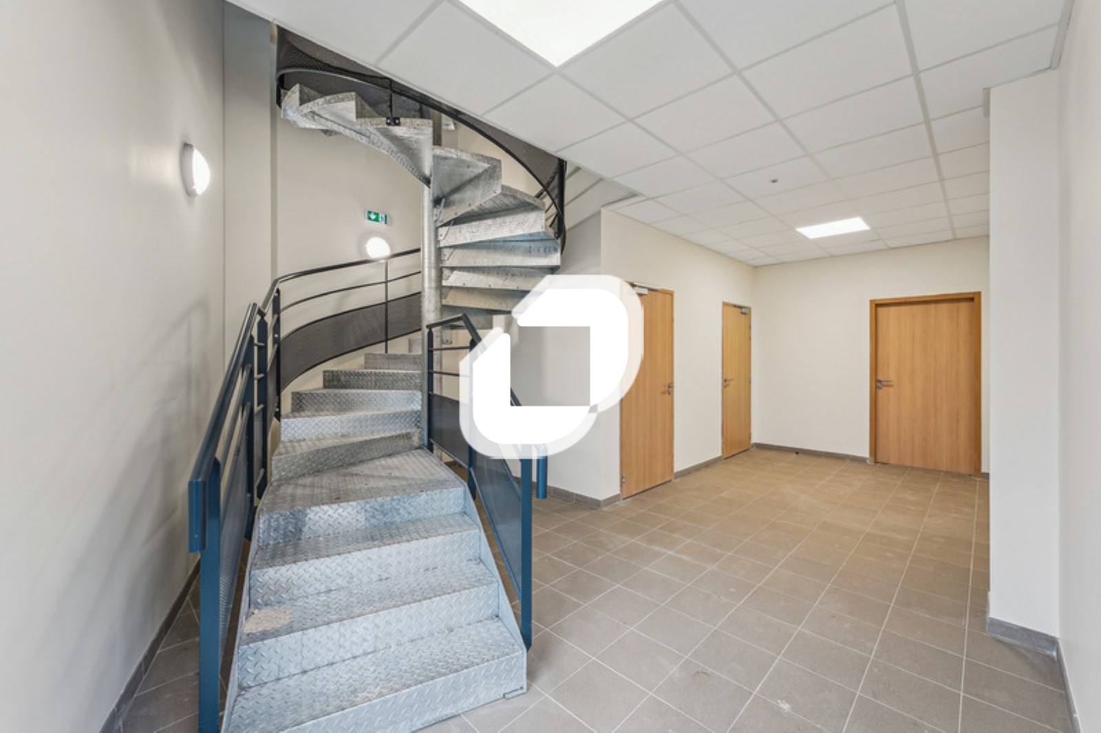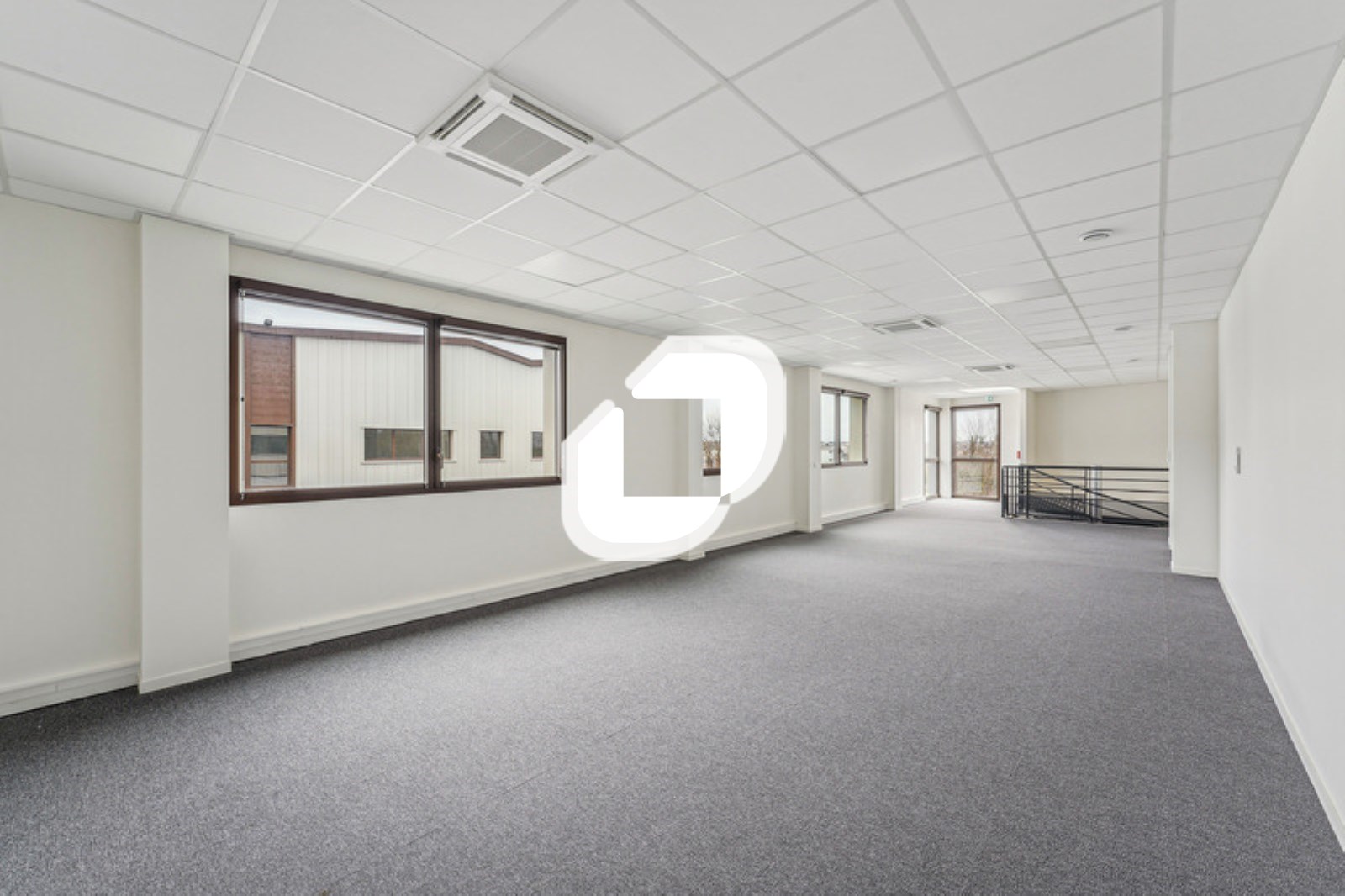 . Façade mur rideau. Accès véhicules légers