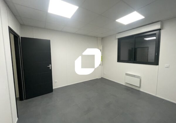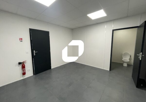. Cuisine équipée, salle de réunion, 3 bureaux cloisonnés, climatisation réversible, douche, grand parking goudronné, accessible PL d’environ 1800 m²