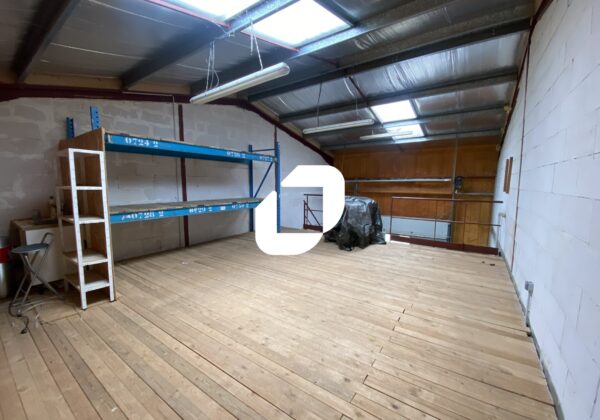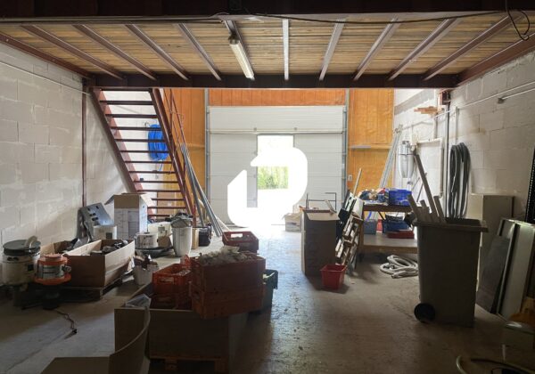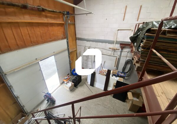 Sanitaires privatifs, triphasé, porte sectionnelle automatique avec porte piétonne, point d’eau, mezzanine.
