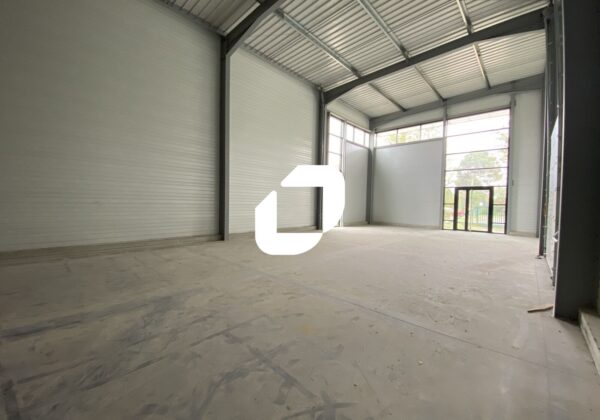Le bâtiment bénéficie de deux portes sectionnelles, d’une hauteur sous plafond de 8 m, ainsi que de 8 places de stationnement. Le tout est situé sur un site entièrement clos et sécurisé.