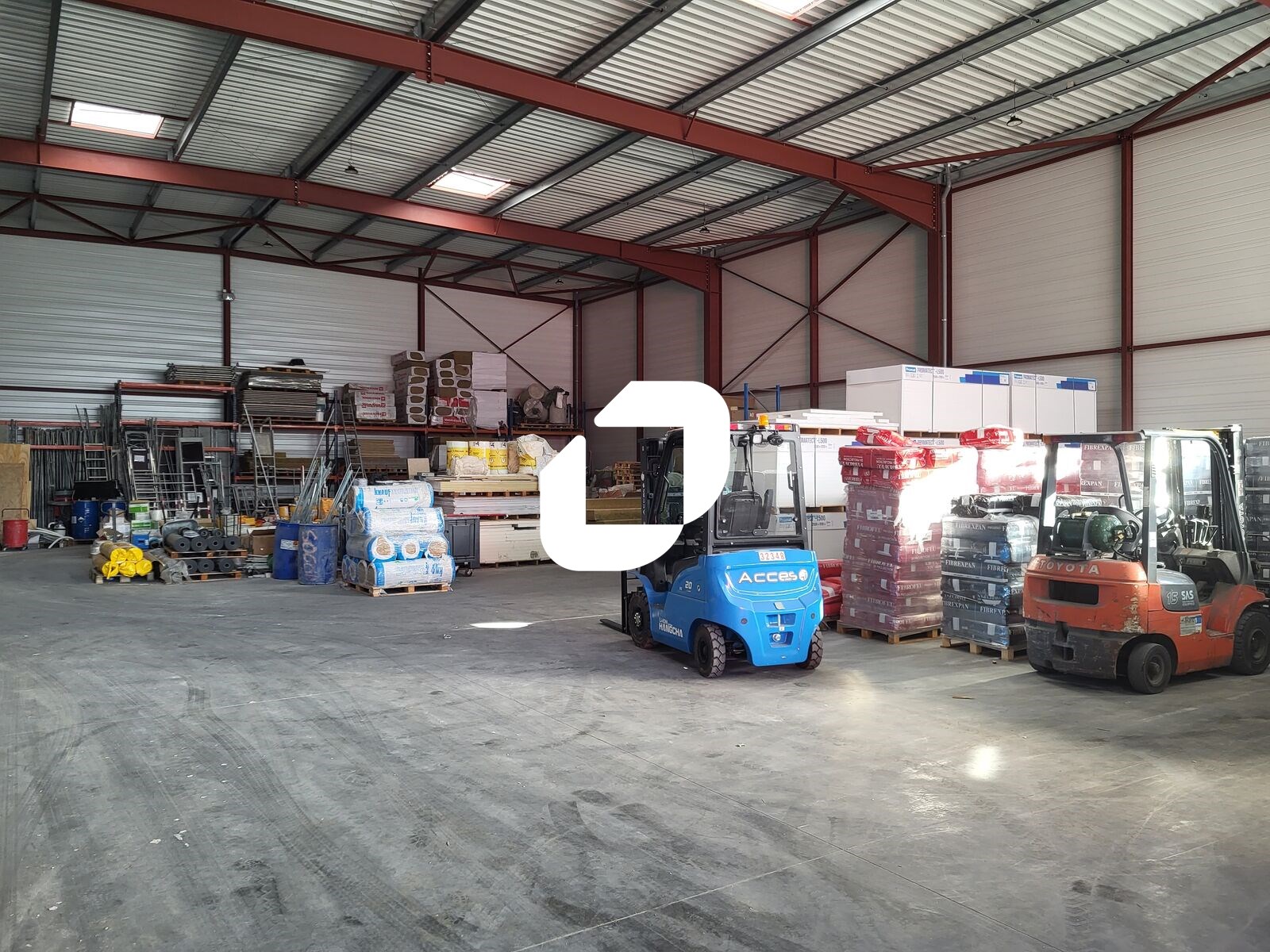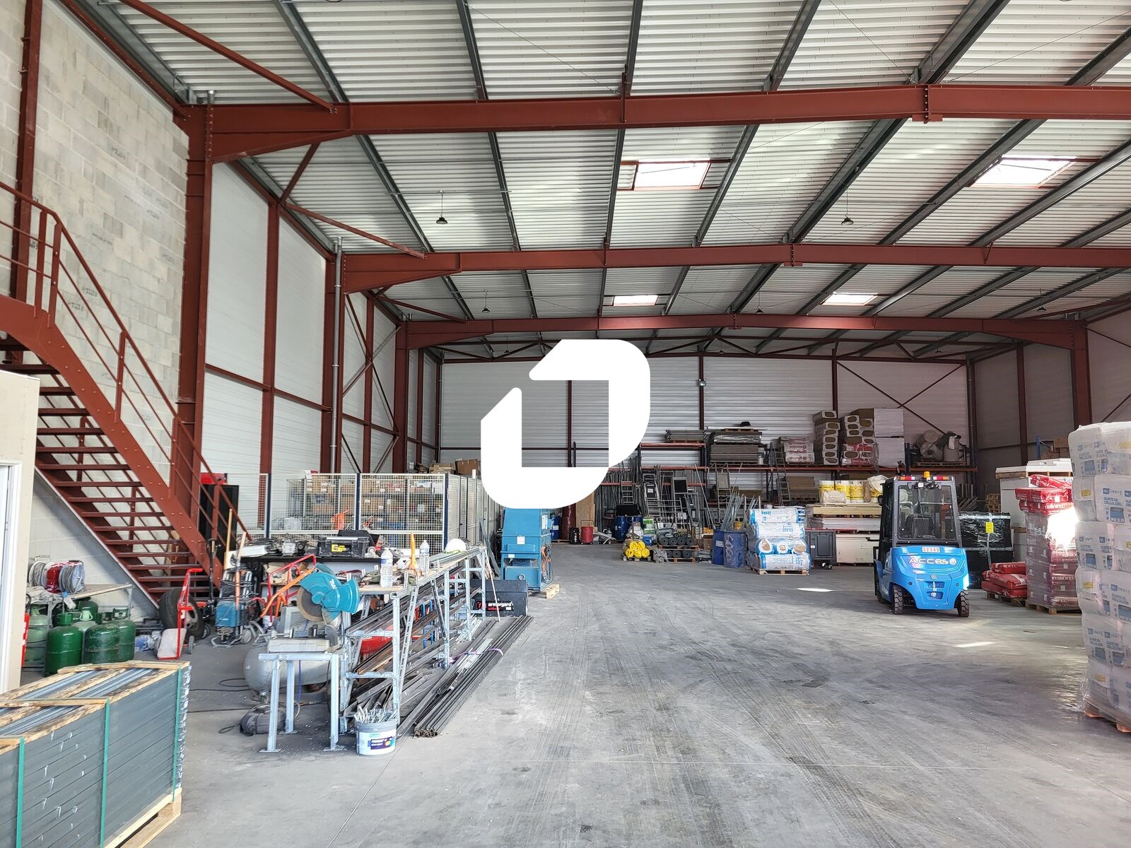 Le bâtiment dispose d’un espace d’entrepôt d’environ 970 m² avec une hauteur sous plafond de 7 mètres, ainsi que d’un espace de bureaux sur deux niveaux de 420 m².