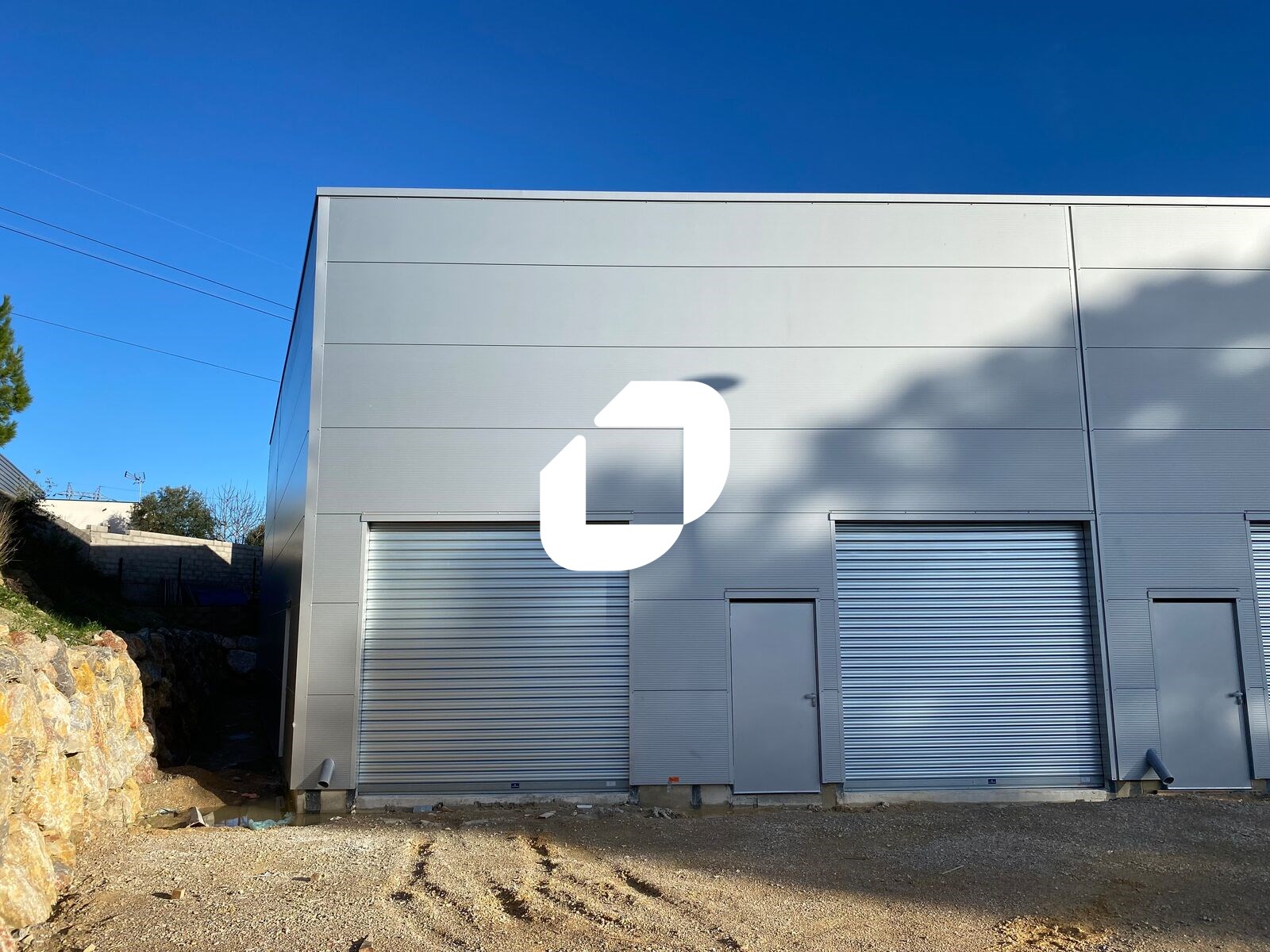 . Accès véhicules légers et poids lourds. Façade en bardage double peau
