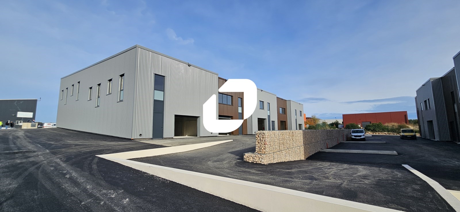 . Façade en bardage. Accès véhicules légers