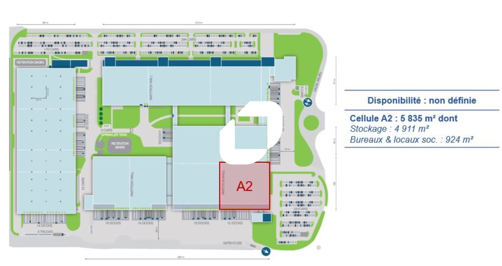 . 9 portes avec quais niveleurs 1 rampe