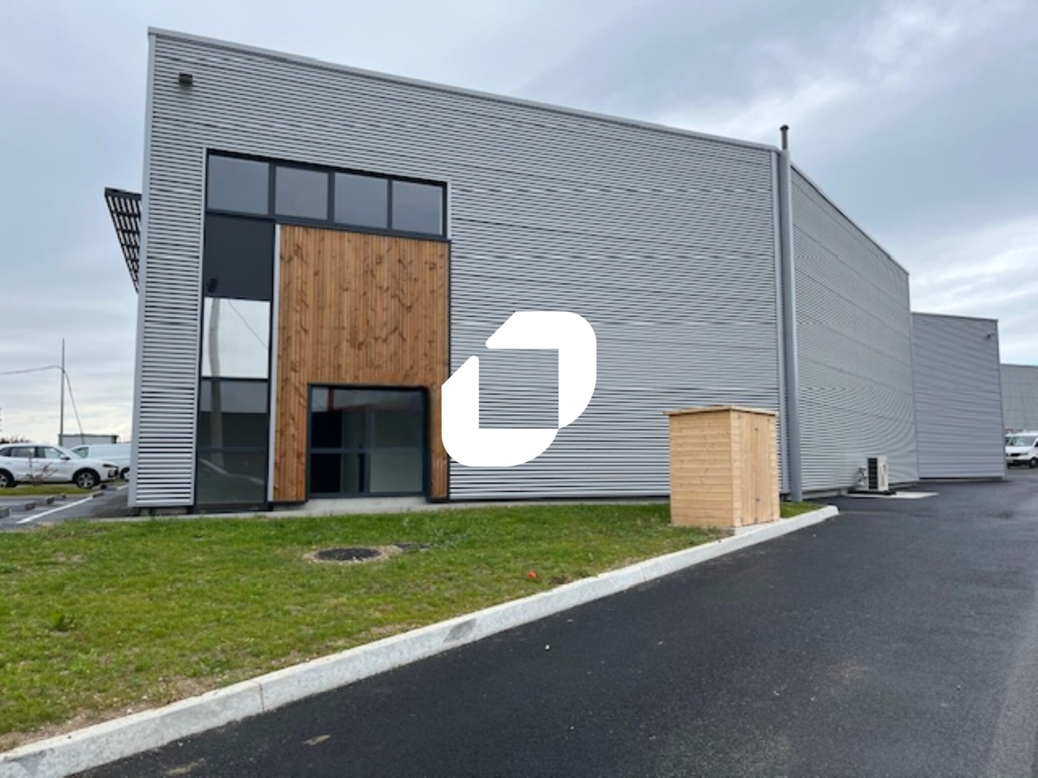 . Façade en bardage. Accès véhicules légers