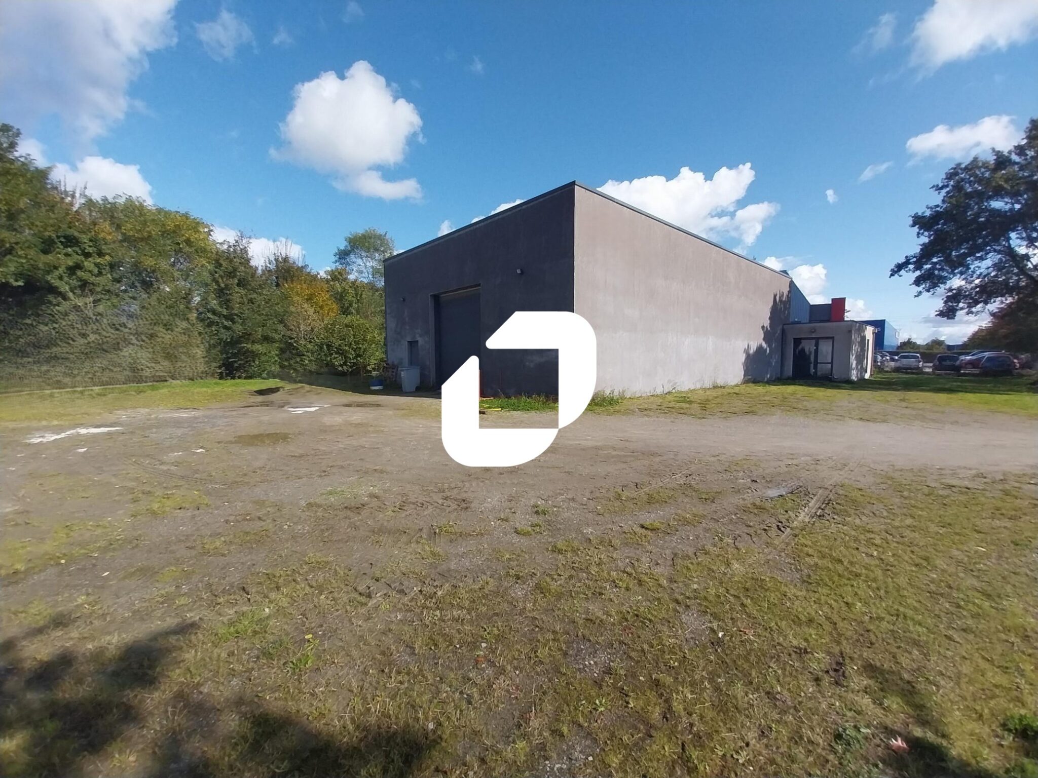 . Façade en bardage. Accès véhicules légers