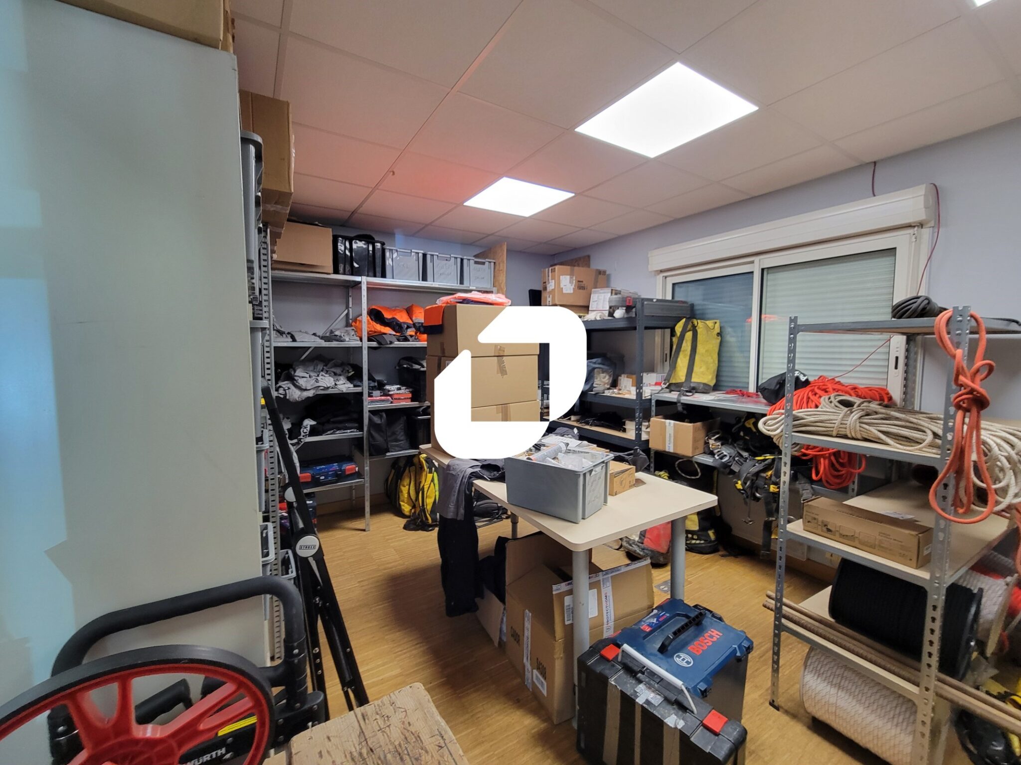Stockage d’environ 178m², un espace showroom d’environ 76m², deux bureaux cloisonnés de 17m² chacun. Le bâtiment dispose d’une parcelle d’environ 1000 m² avec la possibilité de stockage extérieur.