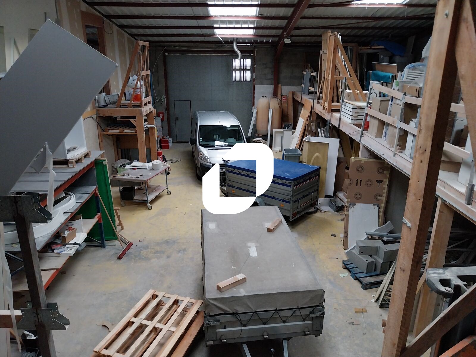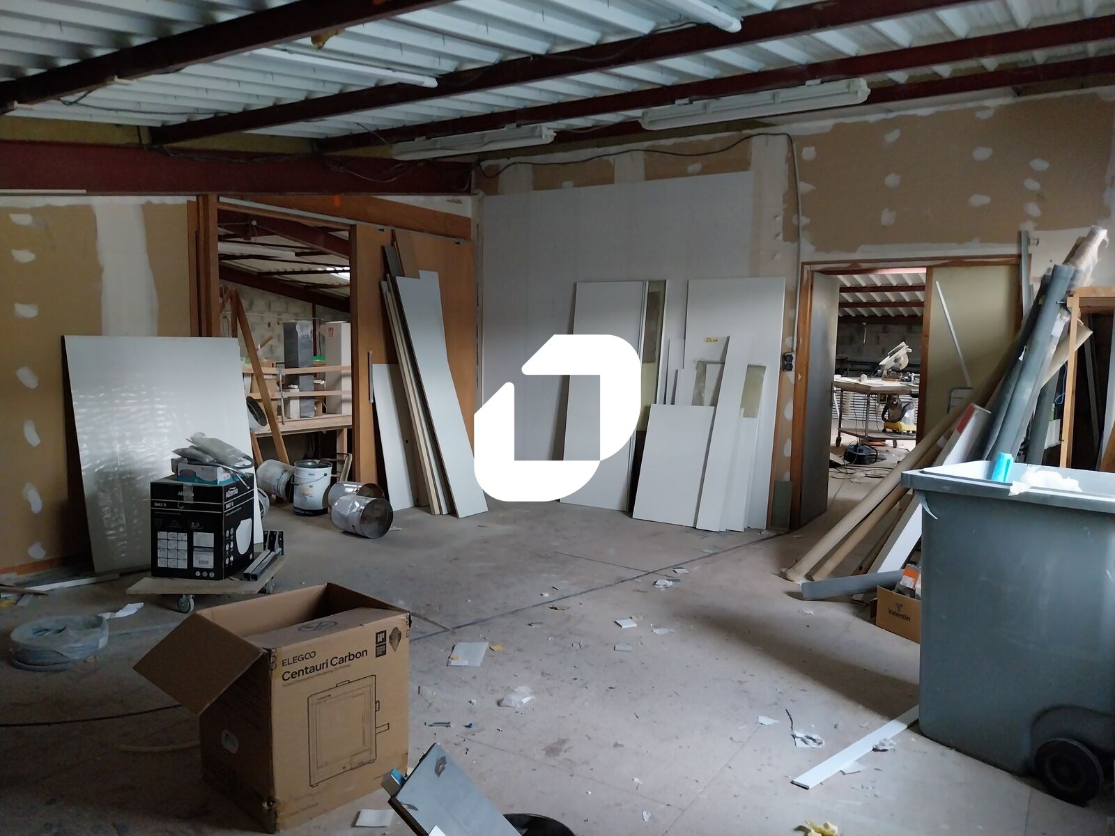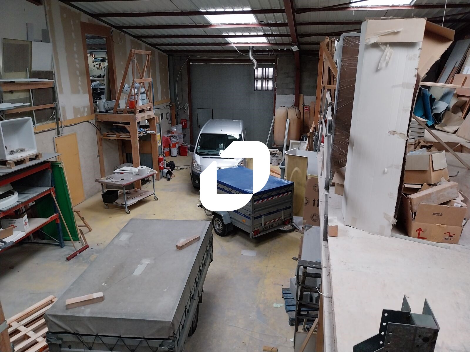Le local sera livré brut de béton avec des sanitaires et un espace de pause refait à neuf ainsi qu’une porte sectionnelle motorisée neuve.