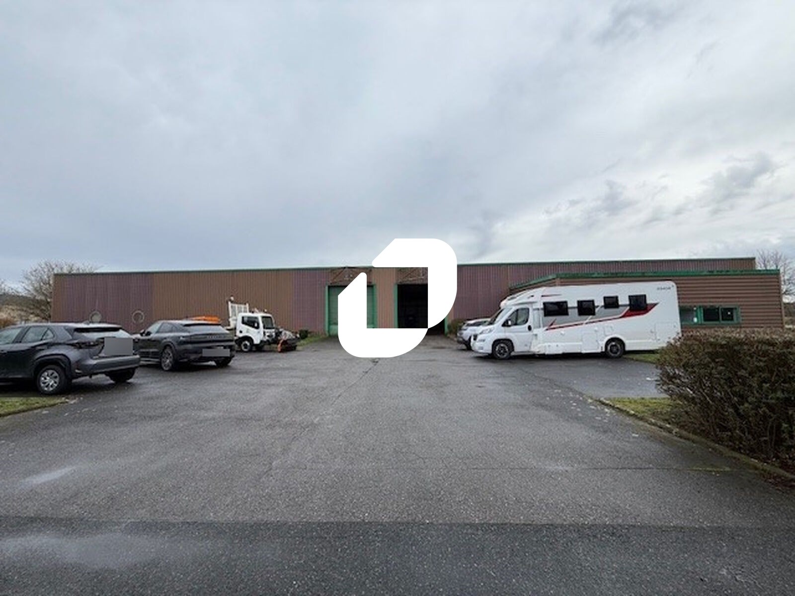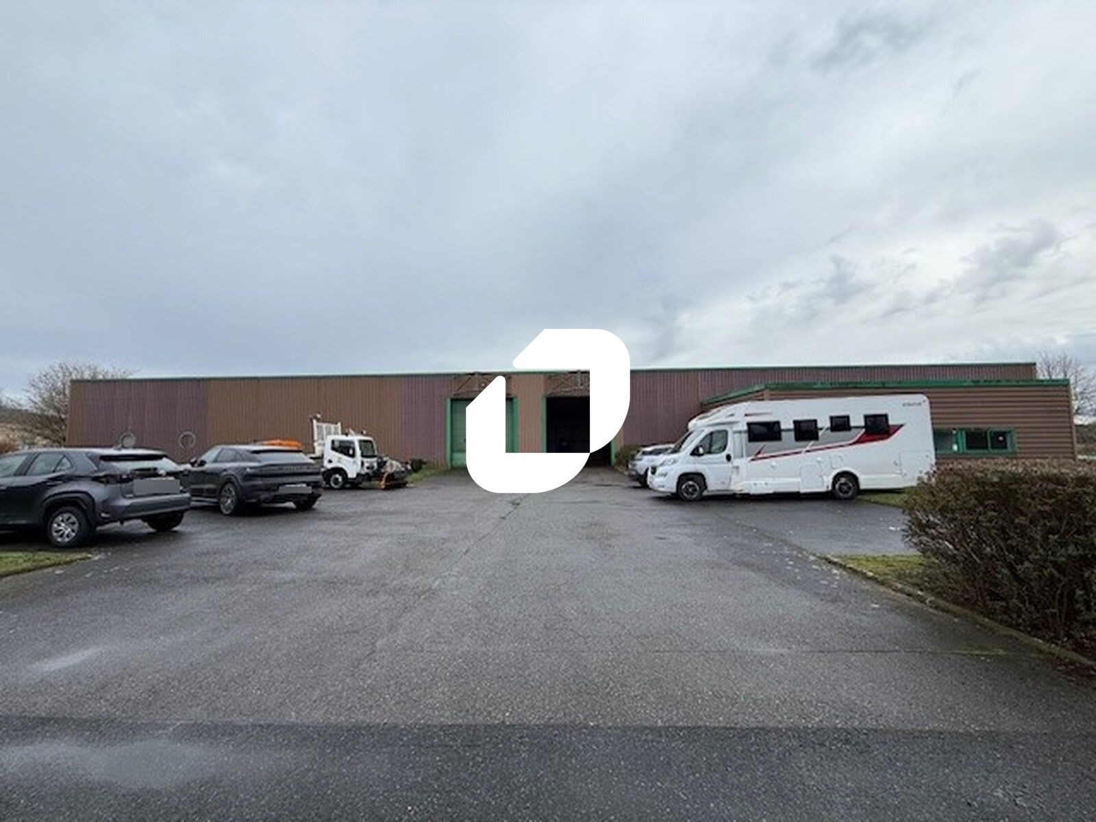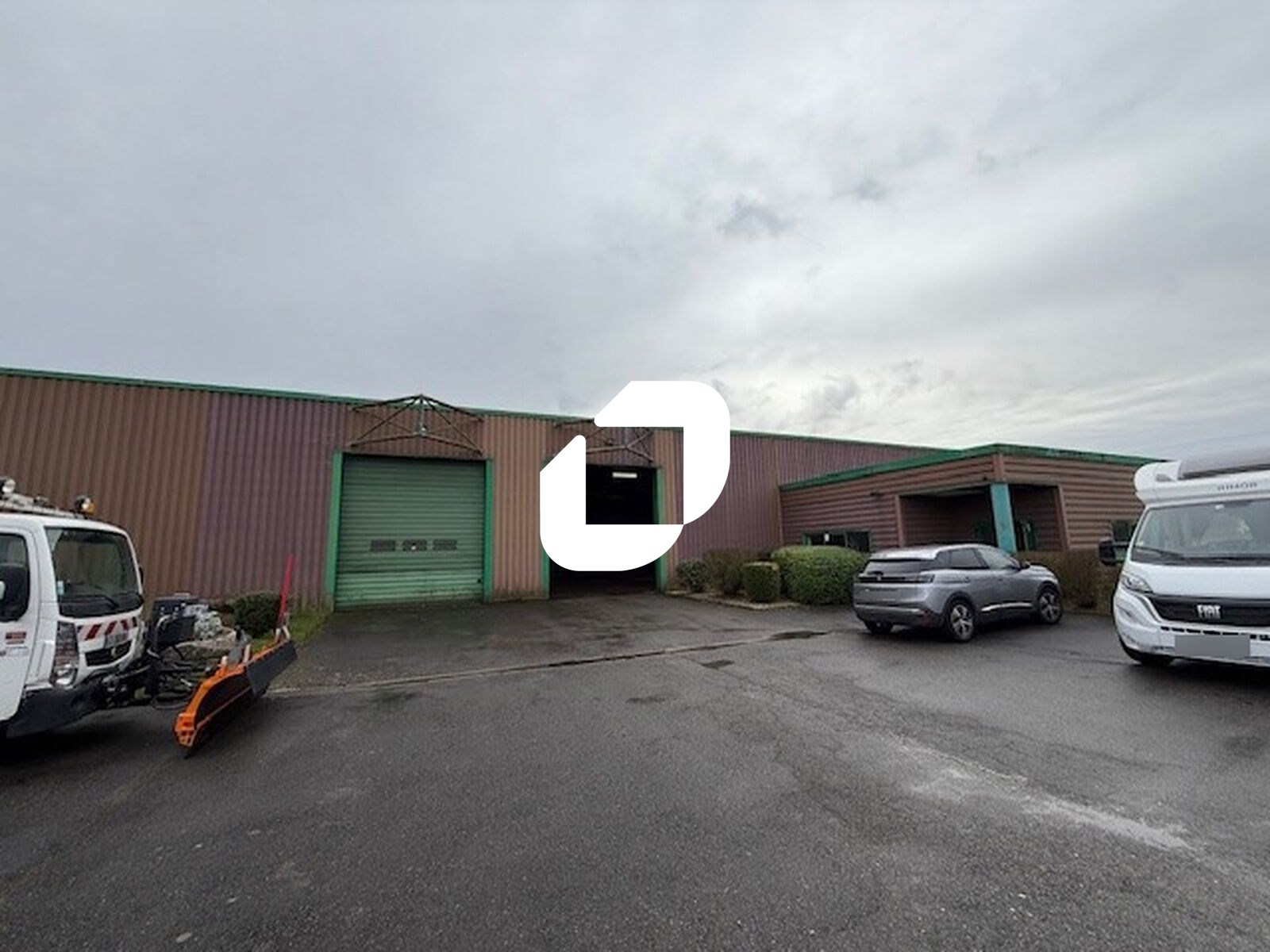 . Façade en bardage . Accès véhicules légers et poids lourds