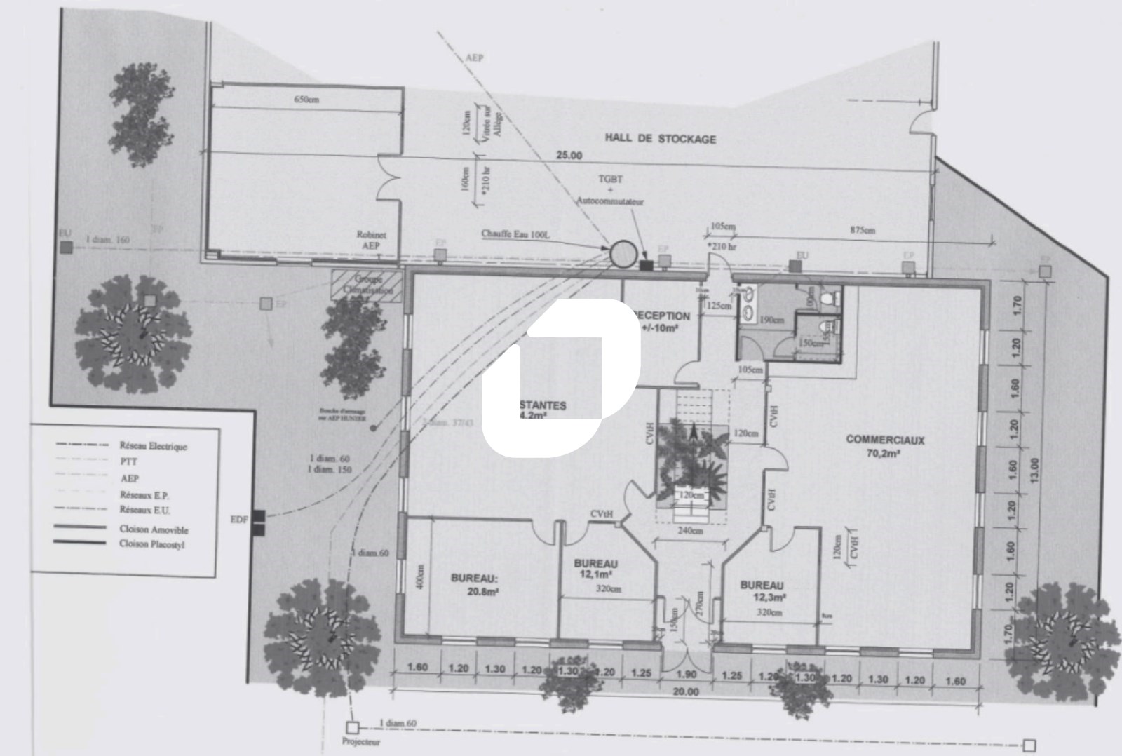 . Hauteur sous poutre : 6,5m