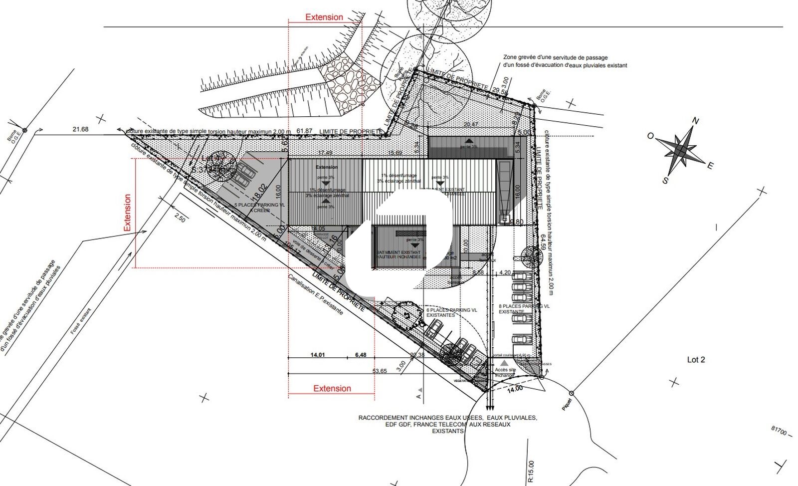 . 3 emplacements parkings avec borne de charge