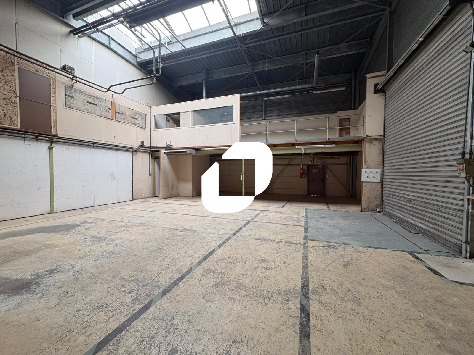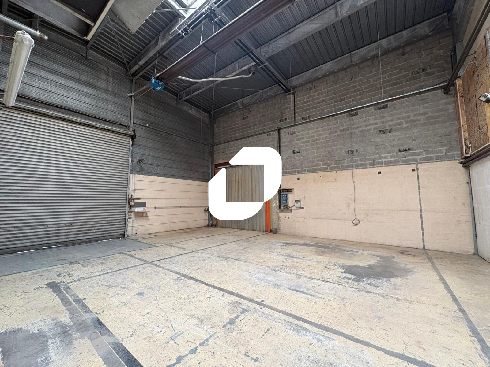 Sanitaires et porte sectionnelle.