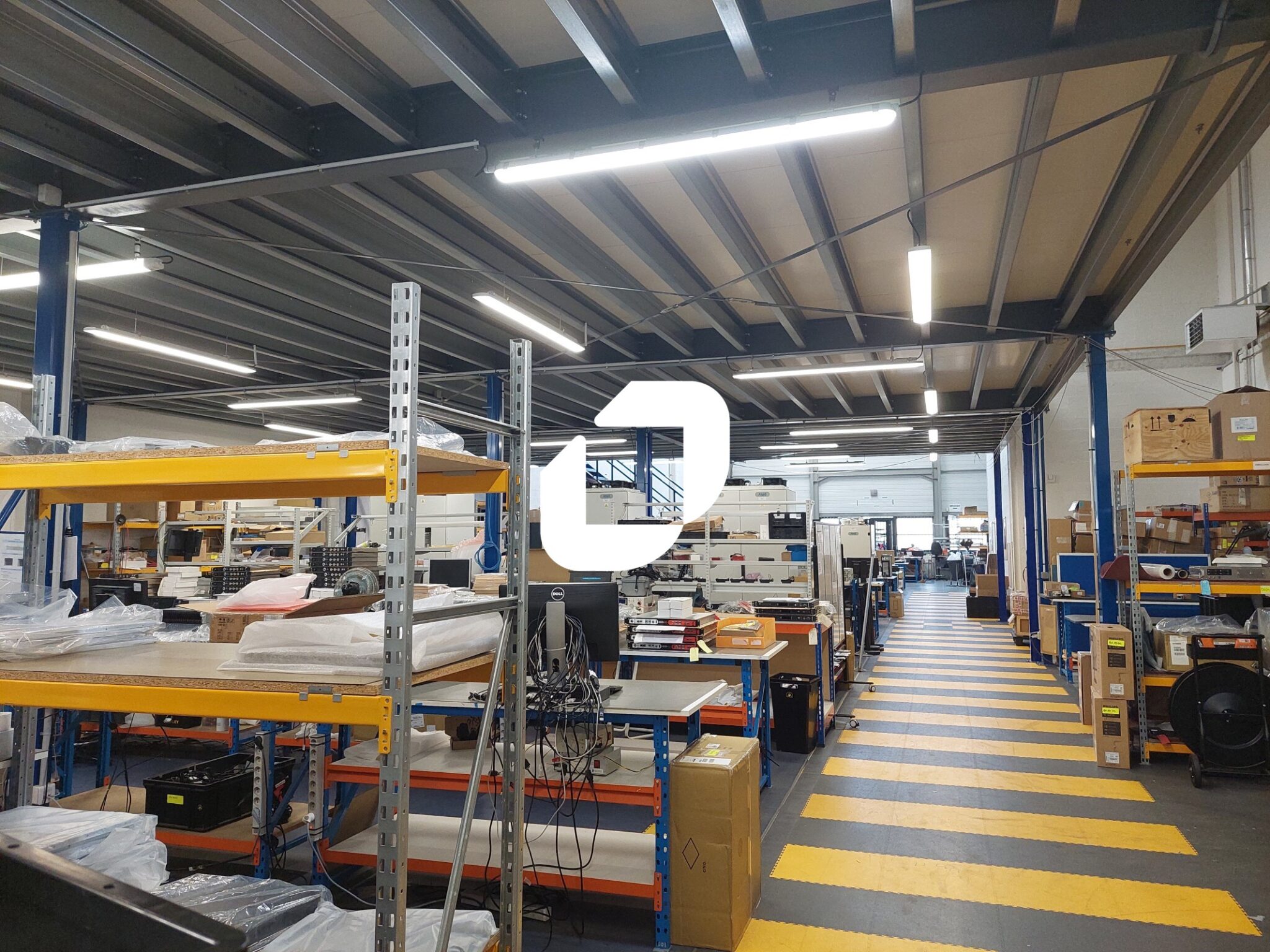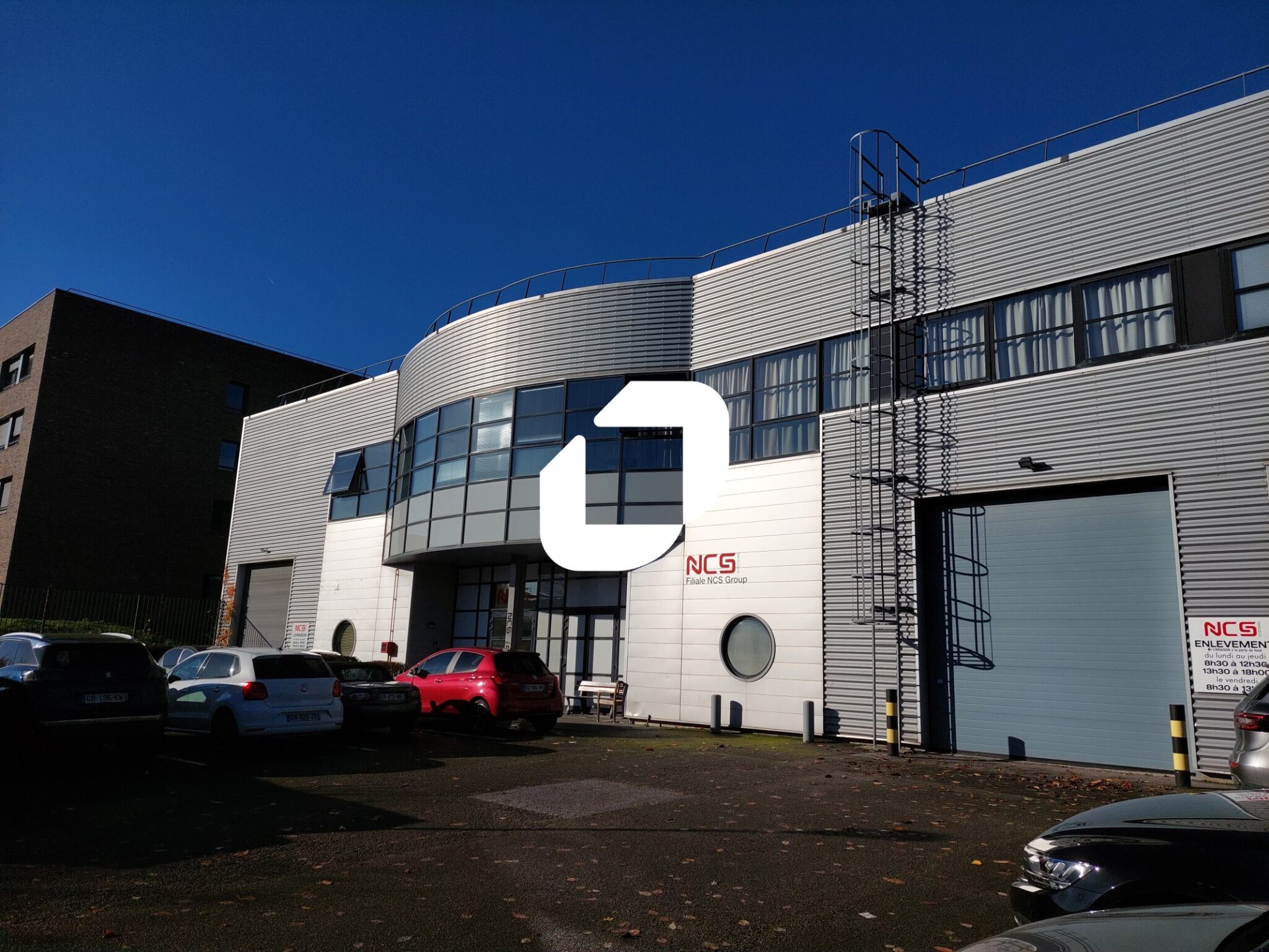 Locaux récents et lumineux, belle hauteur sous plafond, charge au sol de 3 tonnes par m², grandes portes sectionnelles, tarif jaune et 25 emplacements de parkings.