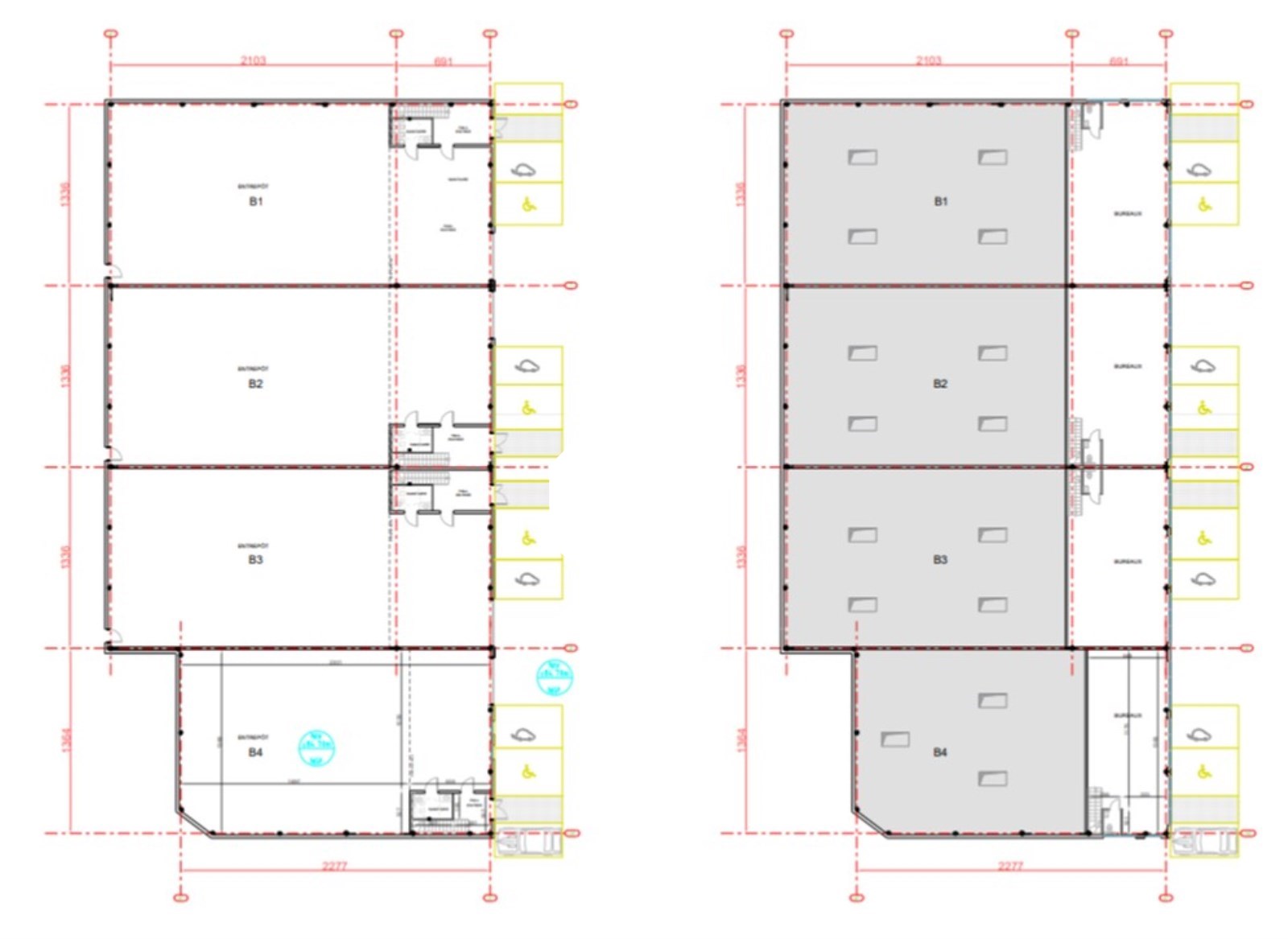 . Bureaux livrés en open space