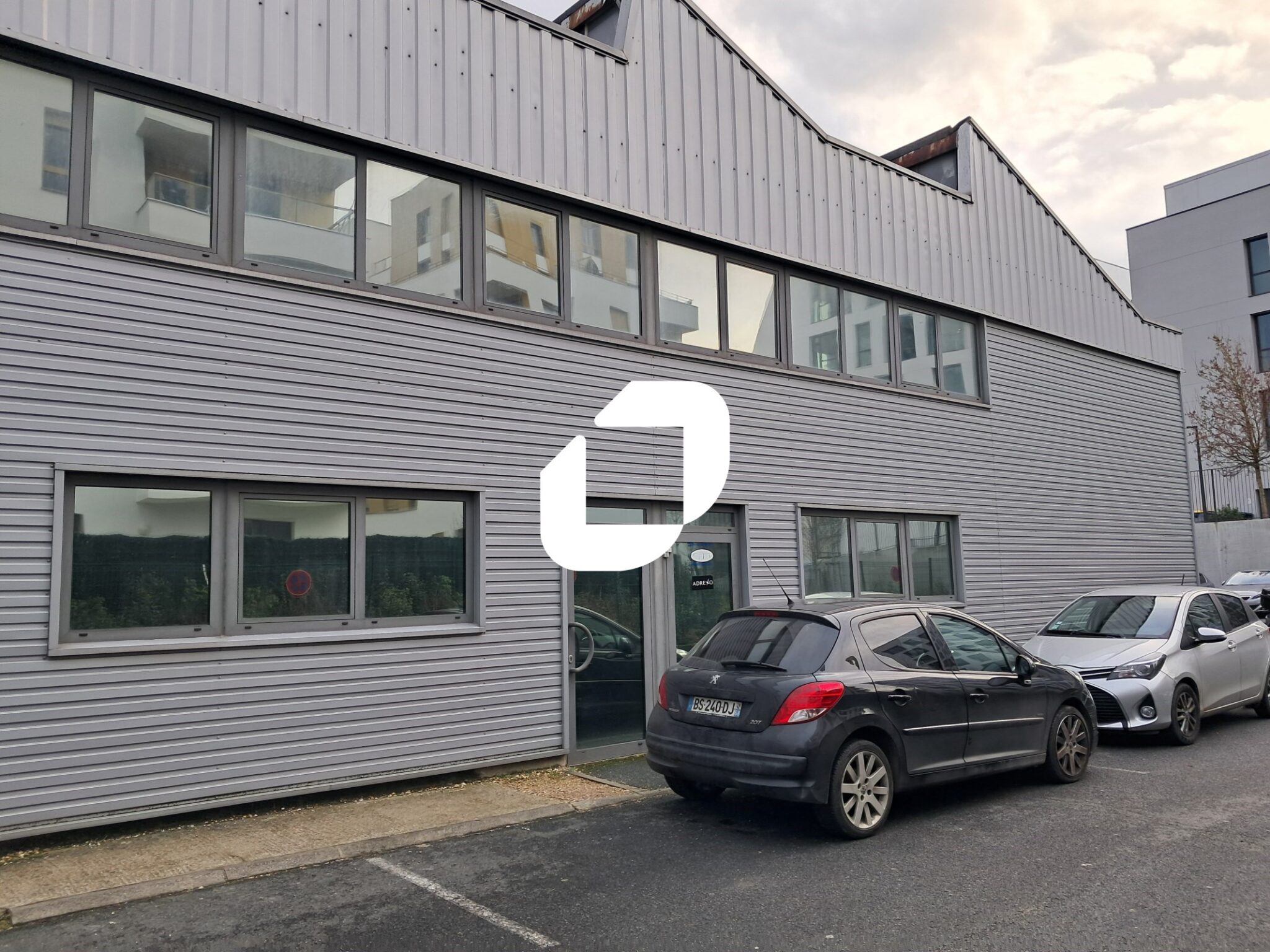 . Façade en bardage, briquettes et parpaings. Accès poids lourds