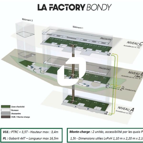 À Louer Locaux d'Activités 20 699.29 m² divisibles à partir de 535.70 m² LA FACTORY 16 CHEMIN DES CARROUGES BONDY (93140)