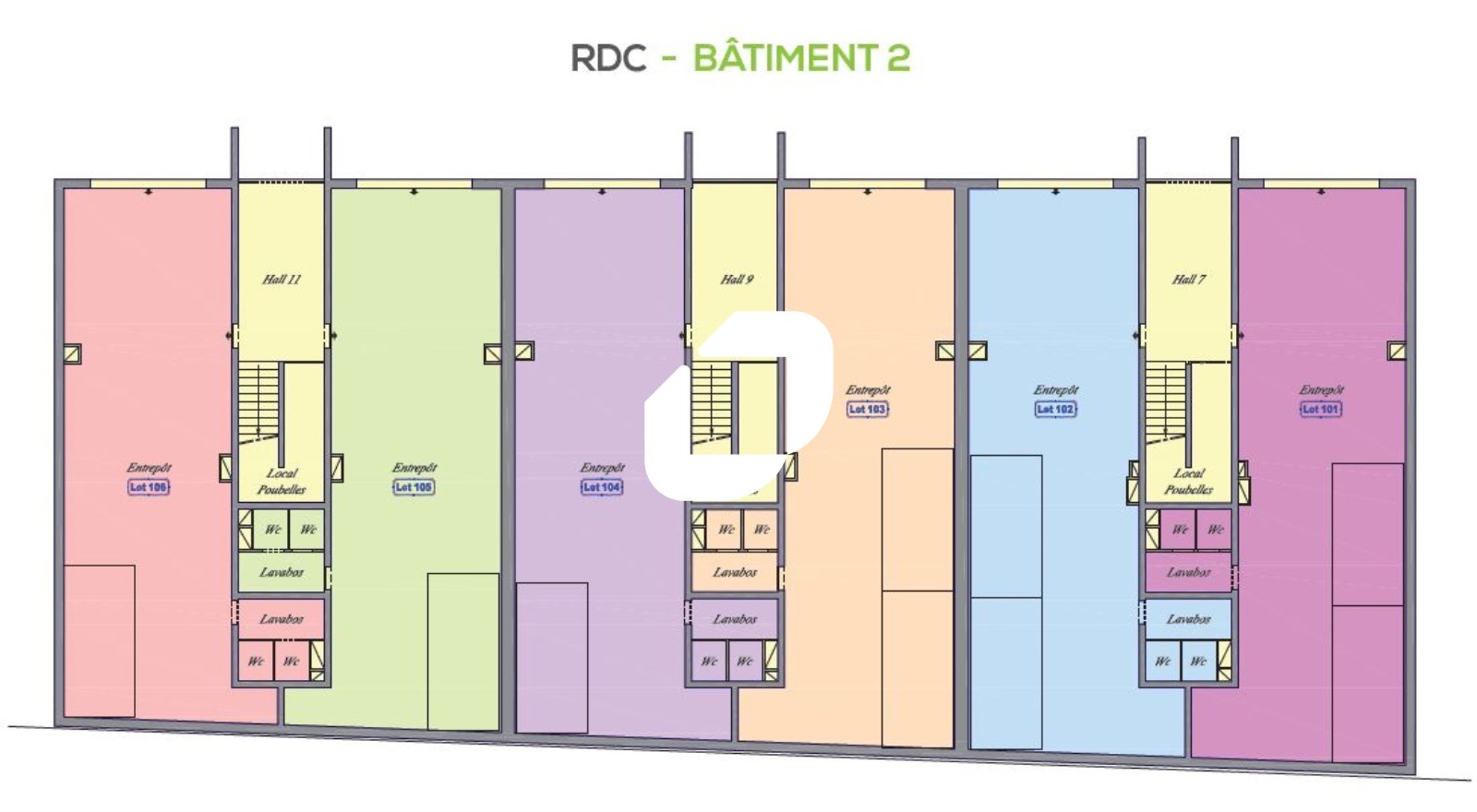 Les locaux proposent une surface de stockage accessible par accès porte sectionnelle et des bureaux d’accompagnements aménagés.