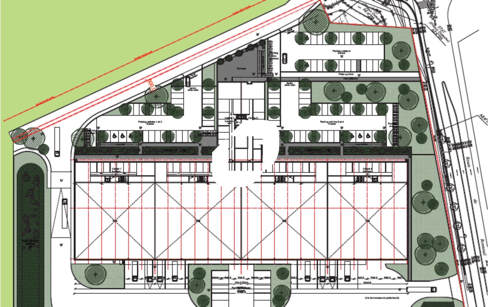 . 4 portes sectionnelles de plain-pied (2 par moitié de bâtiment)