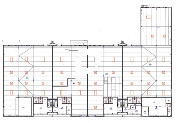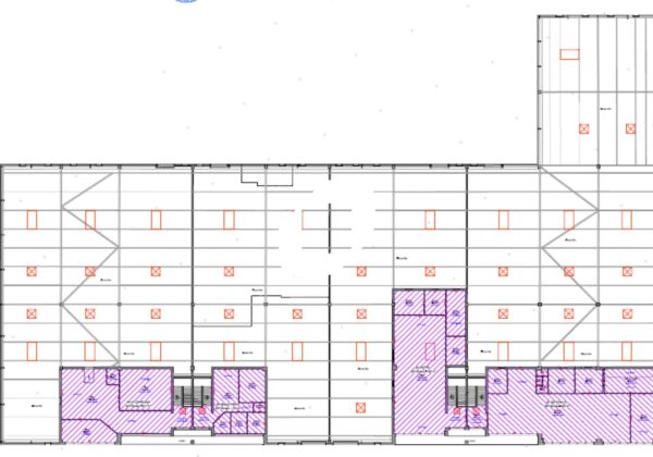 . Structure béton et bois lamellé-collé. Couverture/étanchéité isolé avec éclairage naturel par dômes translucides en polycarbonate (compris désenfumage)